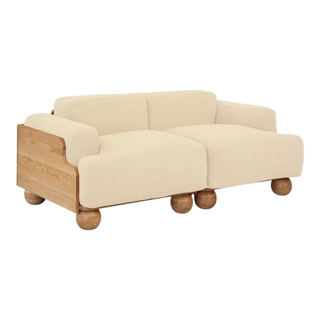Nismaaya Batson Oak Wood 2 Seater Sofa White