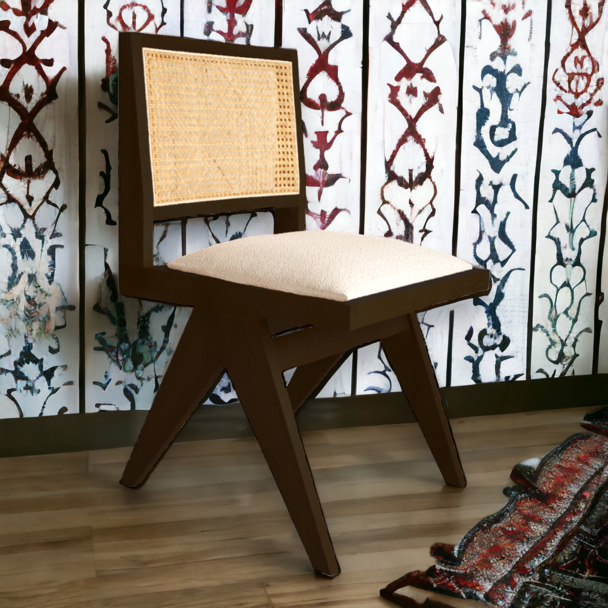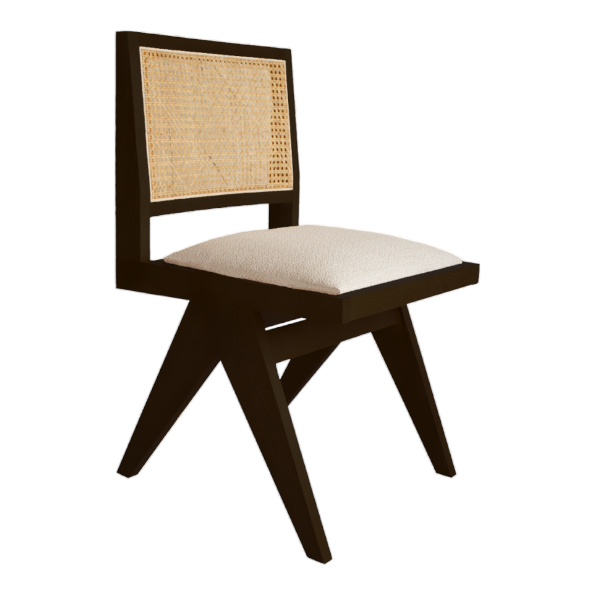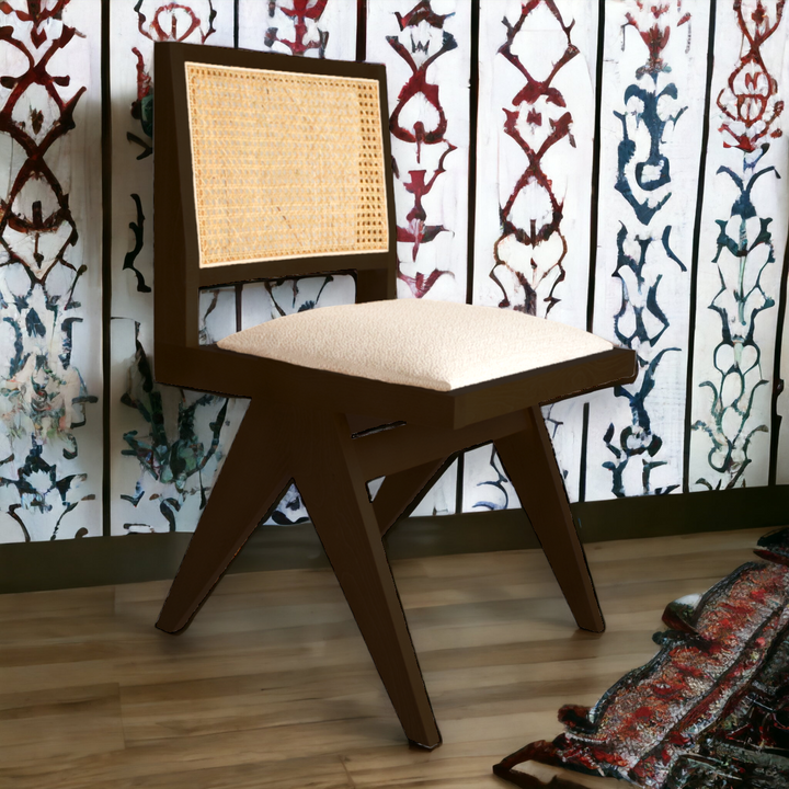 Elevate your dining experience with the rich elegance and contemporary comfort of the NISMAAYA Hilderic Rattan Dining Chair with Upholstered Seat in Dark Brown.
