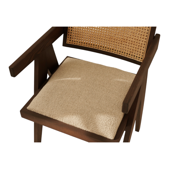 INTRODUCING THE NISMAAYA HILARIUS RATTAN DINING CHAIR WITH UPHOLSTERED SEAT IN DARK BROWN
