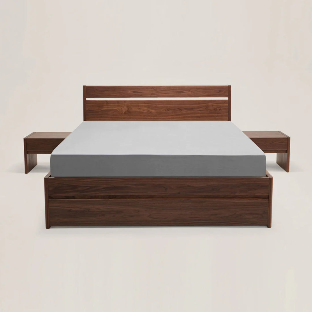 Nismaaya Daichi Walnut Wood Leather Headboard Bed