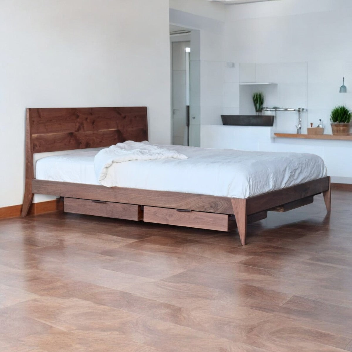 Introducing the Nismaaya Dae Walnut Wood with Storage Bed: Smart Storage, Timeless Elegance Product Speciality Embrace the perfect blend of smart storage and timeless elegance with the Nismaaya Dae Walnut Wood with Storage Bed. Expertly crafted from premium walnut wood, this walnut double bed is designed to optimize space without compromising on style. The Dae Bed seamlessly combines functionality with sophistication, offering a chic and organized focal point for your bedroom. Product Description The Nismaaya Dae Walnut Wood with Storage Bed is a versatile solution for modern living. With dimensions of [provide dimensions], it offers a spacious and organized sleeping surface. The walnut wood double bed frame not only showcases the natural beauty of the wood but also incorporates discreet storage compartments beneath the bed. The classic yet functional design ensures that the Dae Bed effortlessly enhances the ambiance of your bedroom, providing both comfort and convenient storage. Product Features