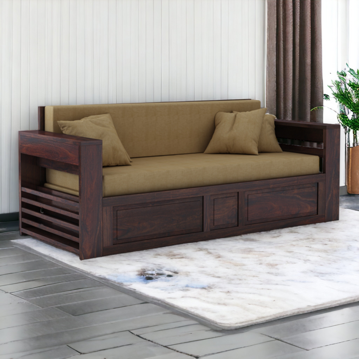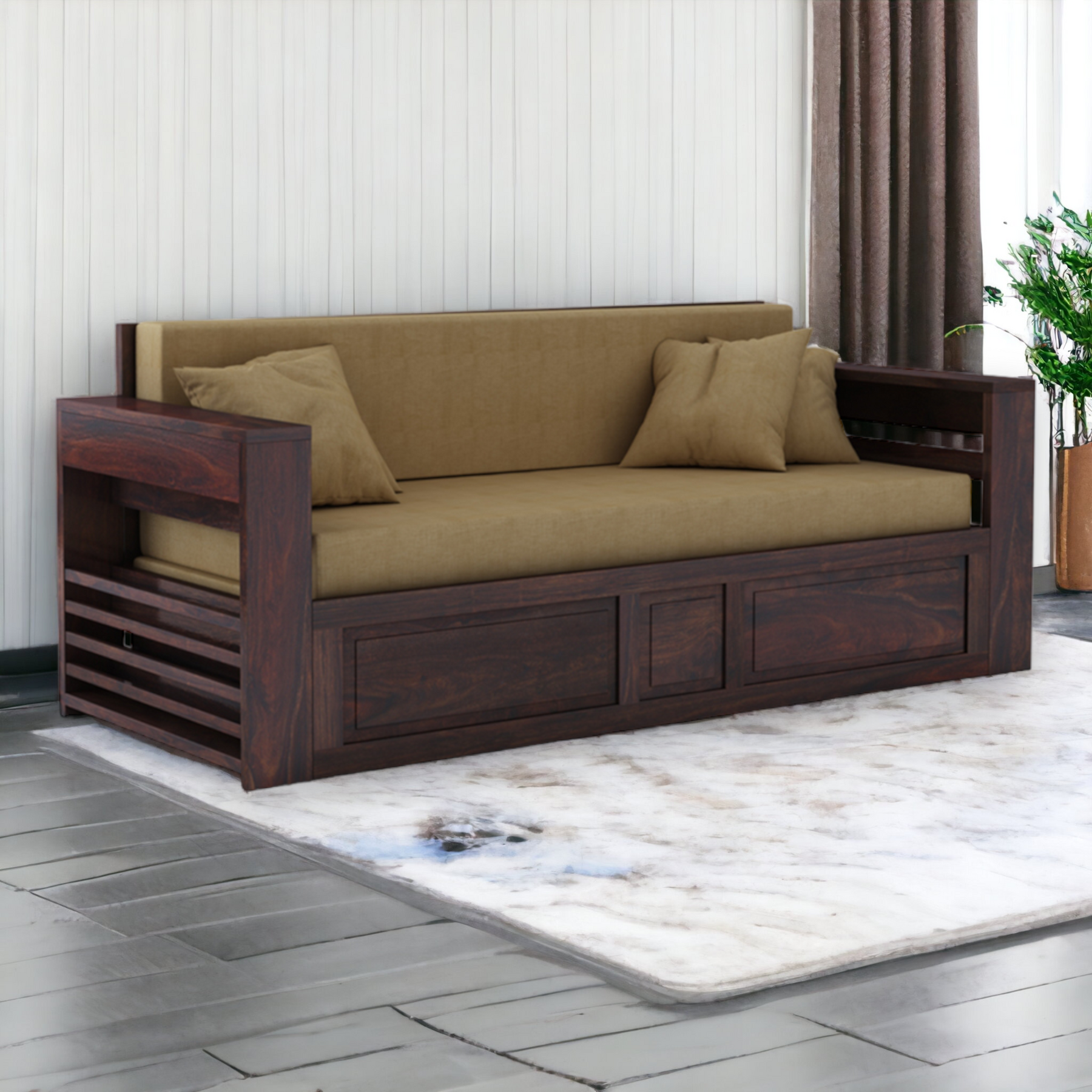VivaRest 3 Seater Walnut Sofa Cum Bed Sheesham Wood