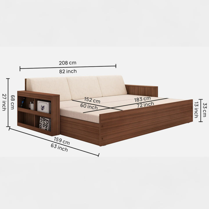 | Description | The Nismaaya Ace Pull-Out Sofa Cum Bed in Teak finish is a smart and stylish space-saving solution for modern homes. Designed to serve as both a comfortable sofa and a functional bed, this piece comes with built-in storage and a mattress, making it ideal for small apartments, guest rooms, or multifunctional living spaces. The elegant dual-tone finish blends seamlessly with a variety of interiors, while the sturdy construction ensures lasting durability. |