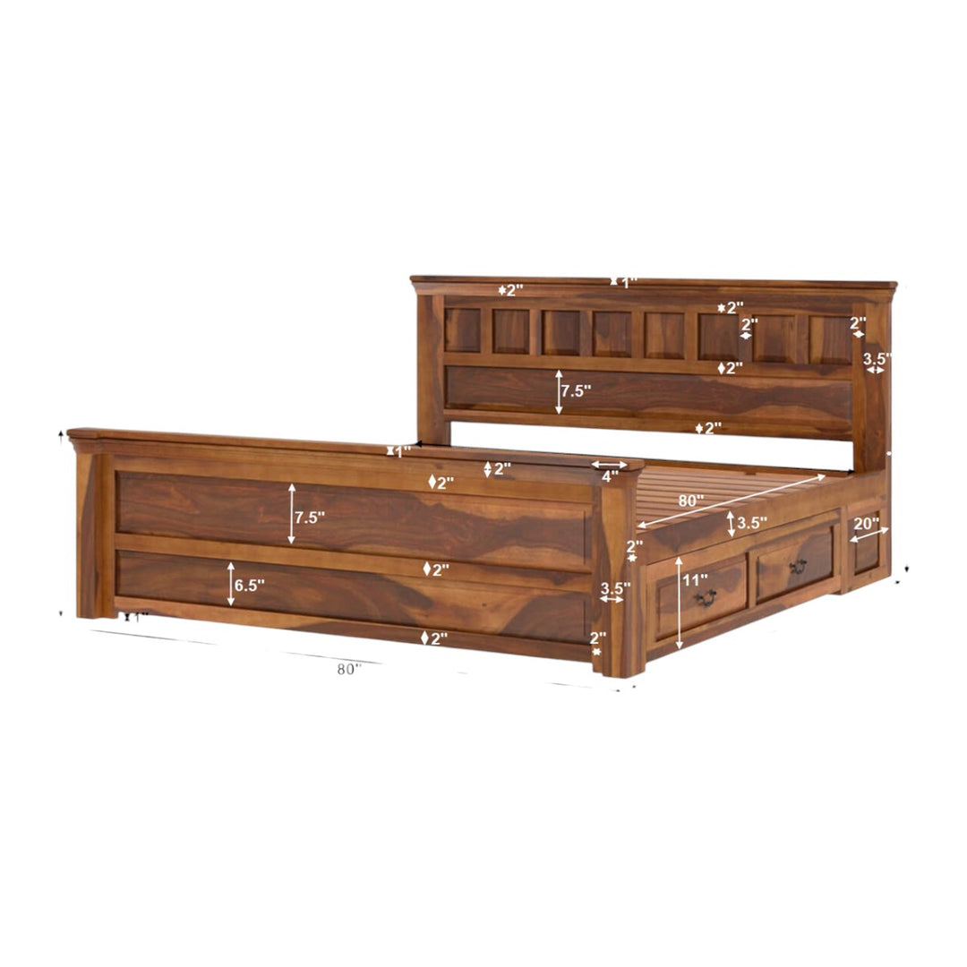Nismaaya Ainsley Sheesham Wood Drawers Storage Bed Honey Finish