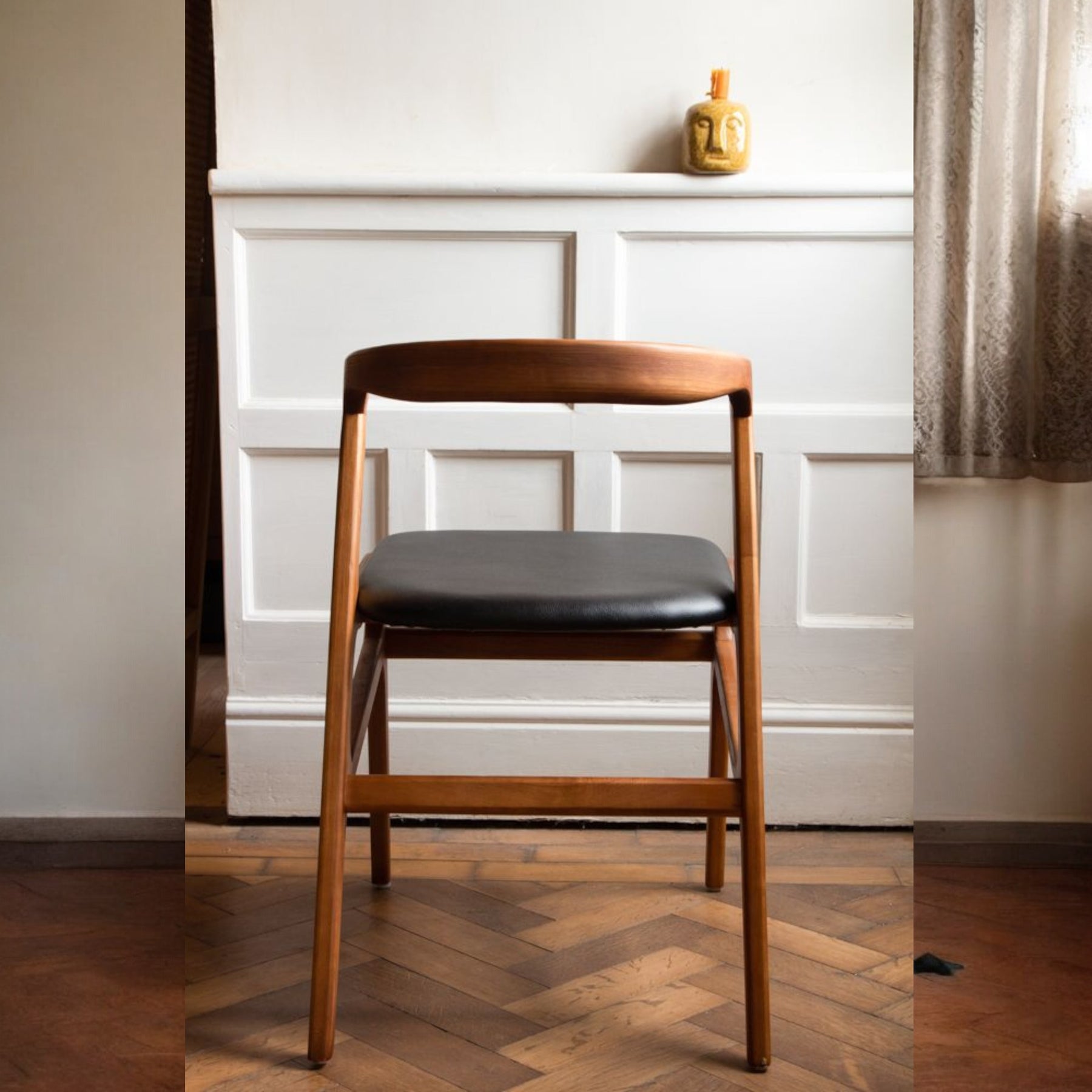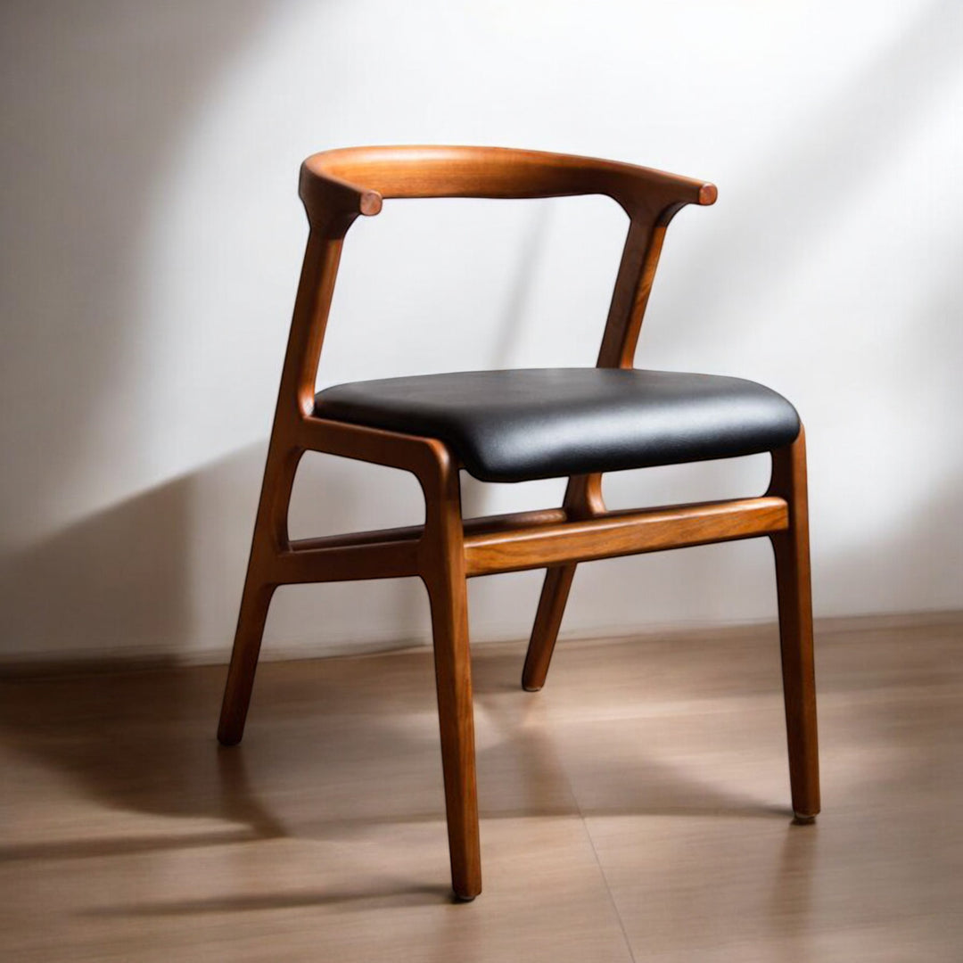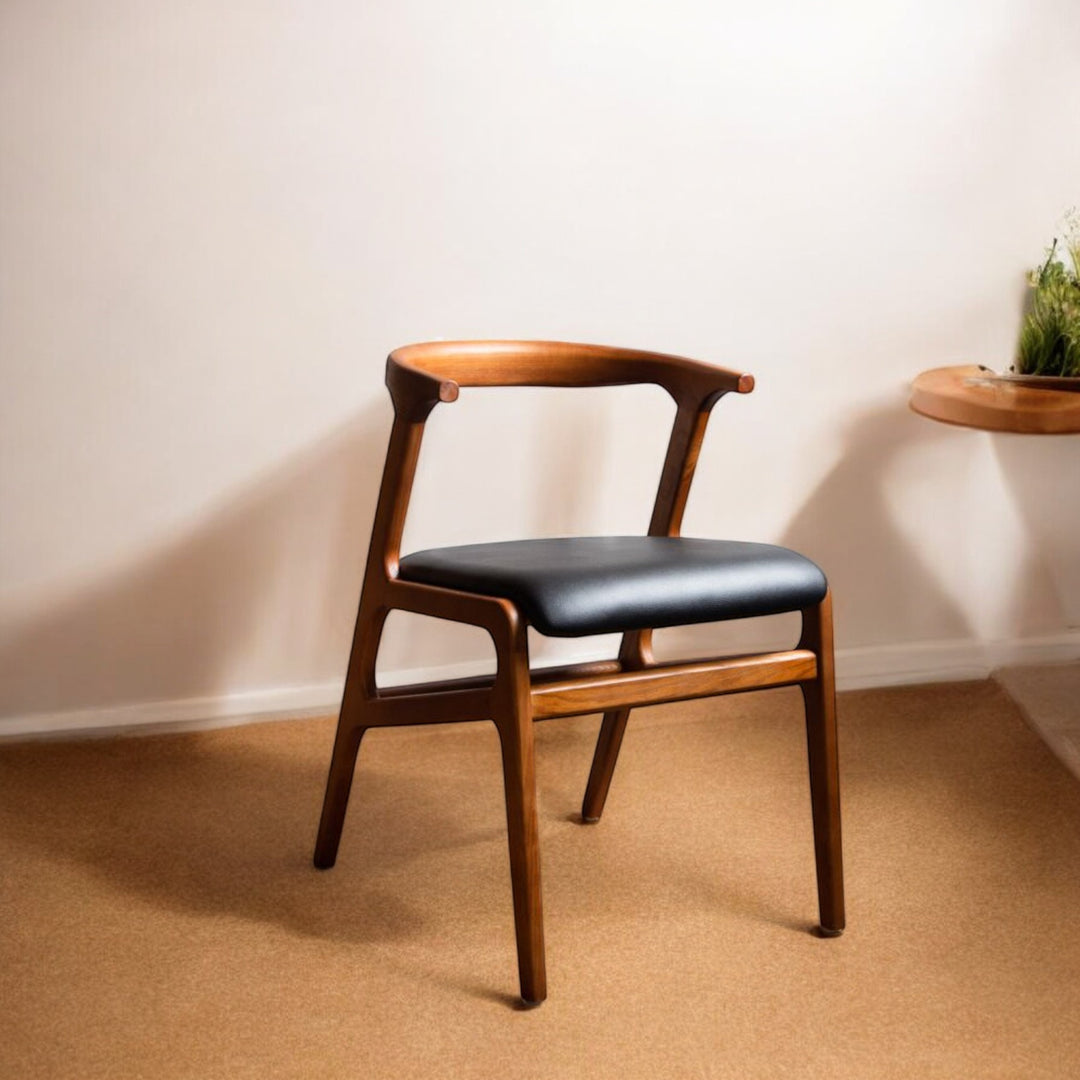 About Nismaaya Ashford Mid-Century ChairInject a chic charm into your home with the Solid Wood Nismaaya Ashford Mid-Century Chair, a wonderful shapely design that is vegan friendly and unforgettably stylish. Showcasing a gorgeous solid wood frame with unique detailing paired with a black leatherette seat, this luxury chair is a must-have addition to create the perfect zone for family feasts, dinner parties, and special occasions alike. Why We Think You’ll Love The Mid-Century ChairExuding a hint of nostalgia, this vintage chair is ultra-sleek, striking, and bursting with character, adding a show-stopping shape to any room in your home. Mixing functionality with dazzling design, this wooden chair is not only comfortable and marvellously chic, but it also doesn't include any animal products, so what’s not to love?! How To Style The Wood & Black Leatherette ChairThe Curved Back Dining Chair will seamlessly compliment your existing décor surrounding your table with a sumptuously divine allure that creates the wow factor from the moment you walk into the room. This Dark Wood Chair is so fabulously unique, it would grace any hallway or landing with a glorious ornamental touch or could be used in your bedroom space to create a serene reading corner or as a stunning study table chair. Please Note: Our handcrafted wooden products are designed to breathe with the seasons, so don't be surprised if you notice some delightful changes in their appearance due to natural shifts in humidity. It's all part of the wood's unique character. |