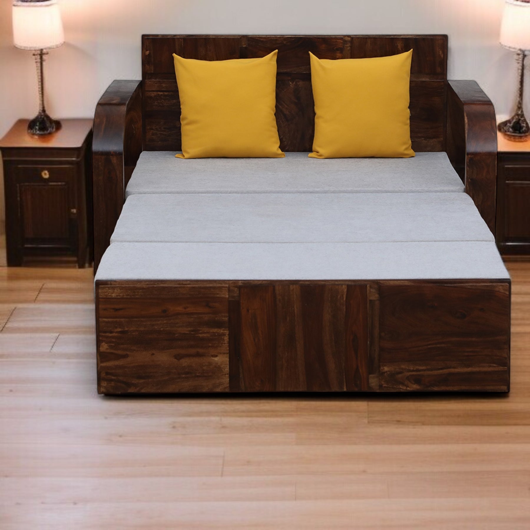 At Nismaaya Decor, we keep updating our designs, and there may be some changes and variations in materials and elements used in comparison to what you see online. However, these changes will be minor, not affecting your preferences and design choices. As wood and stone are natural products, they react in a different way to staining, and thus they may impact their appearance in terms of colour, grains, and patterns. The handmade fabrics look slightly different in the photographs due to angles and lighting. Also, we confirm the availability of fabrics used in the furniture pieces post receipt of the payment.