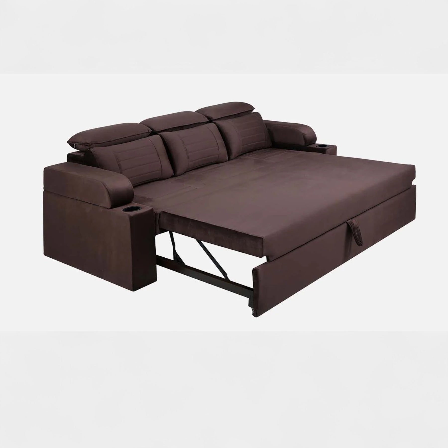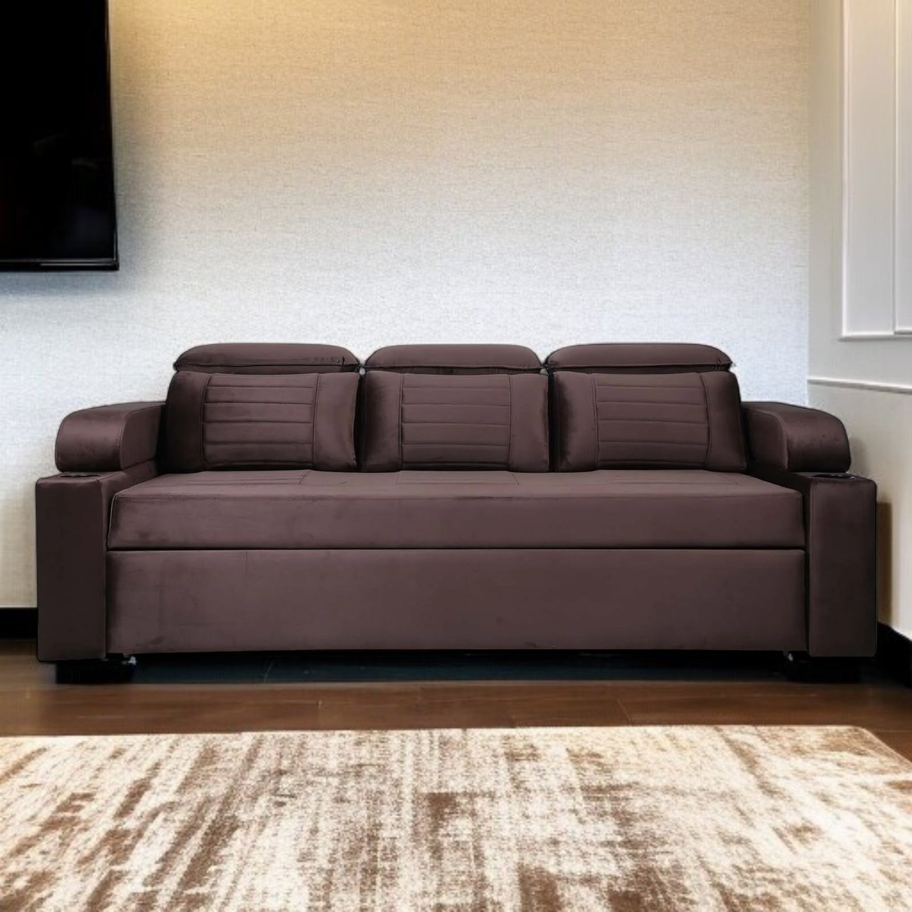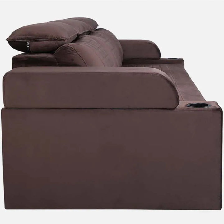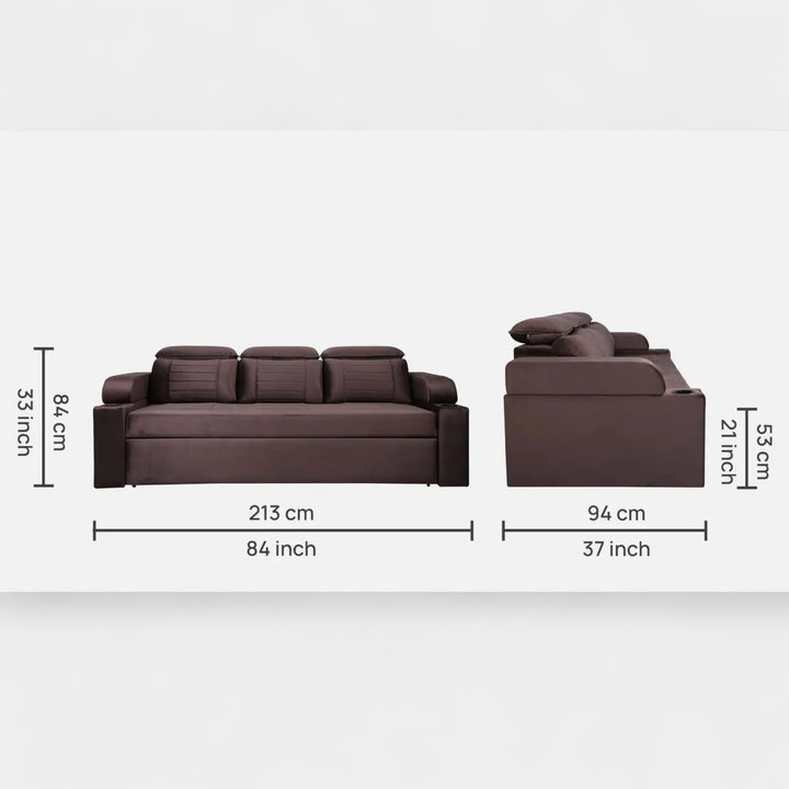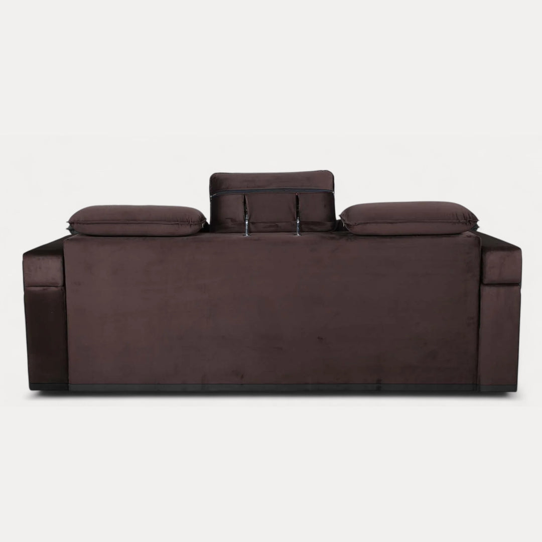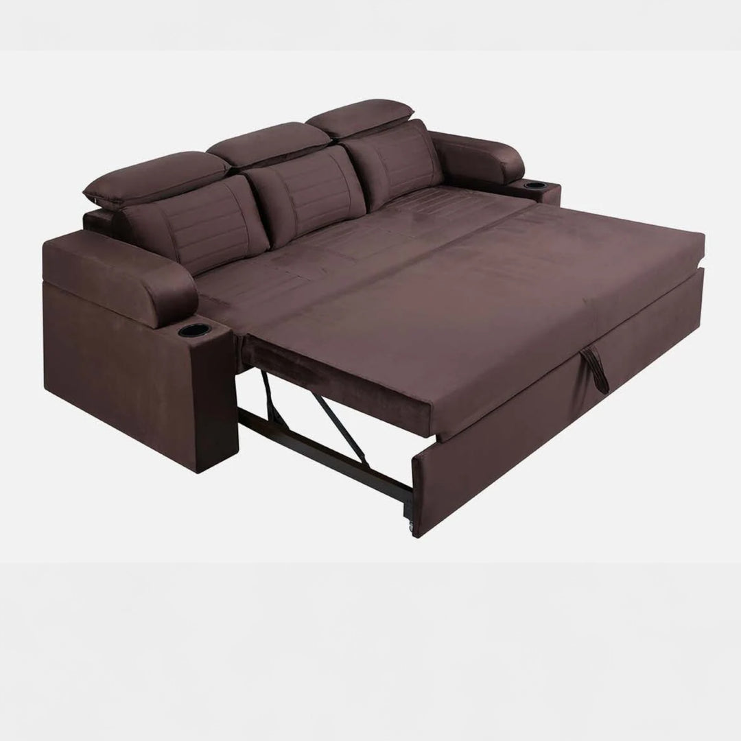 Nismaaya Cameo Velvet Sofa Cum Bed Chocolate Brown With Cup Holder