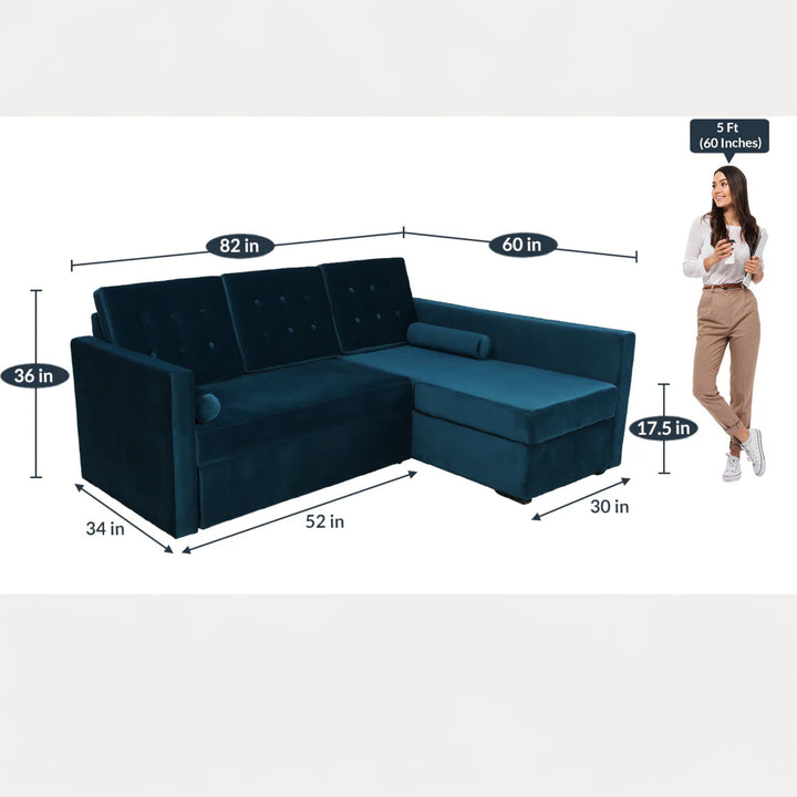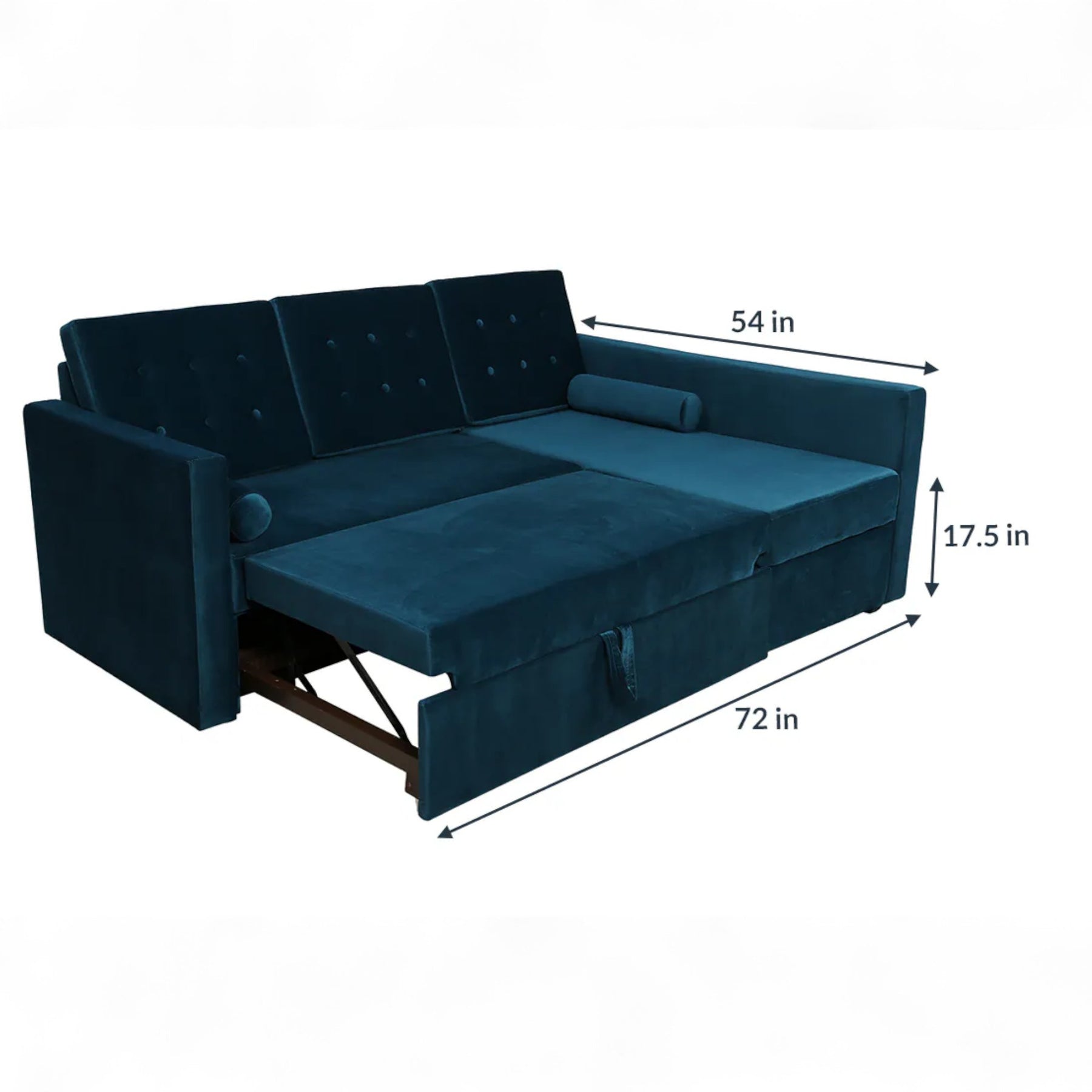 | Description | The Nismaaya Claven Velvet Sofa Cum Bed in Teal Blue with Storage is a smart and stylish space-saving solution for modern homes. Designed to serve as both a comfortable sofa and a functional bed, this piece comes with built-in storage and a mattress, making it ideal for small apartments, guest rooms, or multifunctional living spaces. The elegant dual-tone finish blends seamlessly with a variety of interiors, while the sturdy construction ensures lasting durability. |