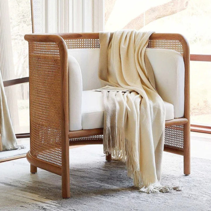 Ehan Solid Ash Wood & Rattan 1 Seater Sofa