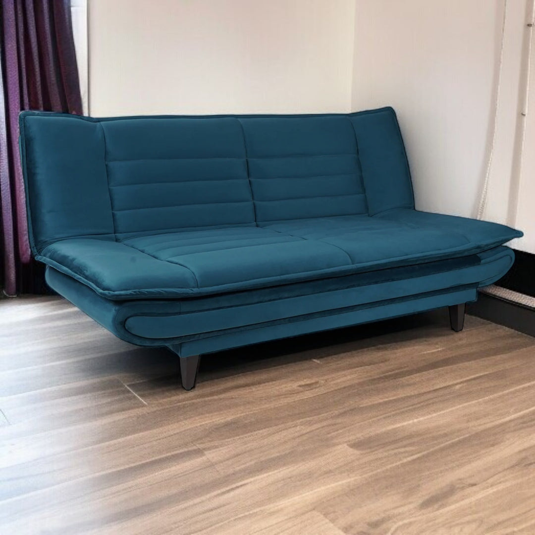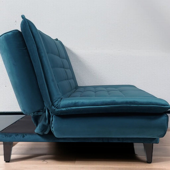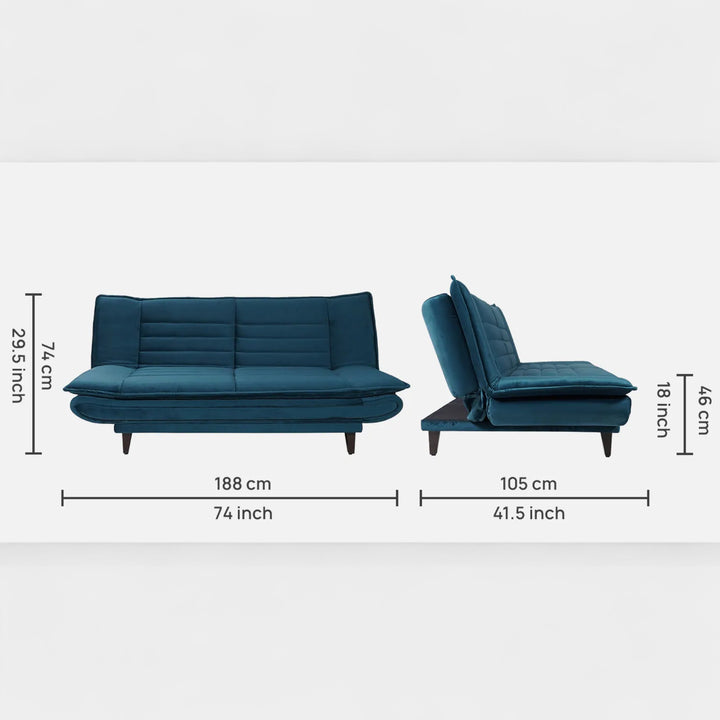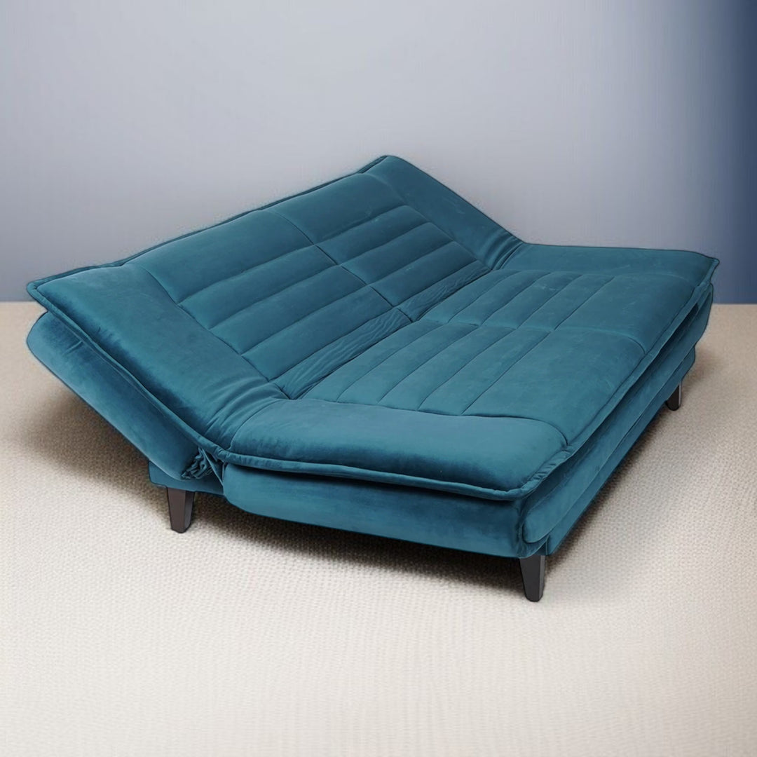 Nismaaya Eliane Velvet Sofa Cum Bed In Teal Blue