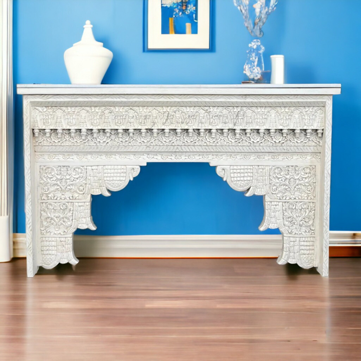 Jennifer Solid Mango Wood Handcarved Wooden Console