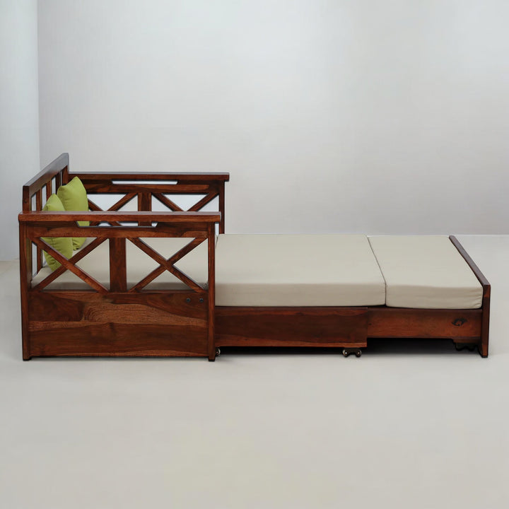 | Description | The Nismaaya 2 Seater Sofa Cum Bed in Honey Oak finish is a smart and stylish space-saving solution for modern homes. Designed to serve as both a comfortable sofa and a functional bed, this piece comes with built-in storage and a mattress, making it ideal for small apartments, guest rooms, or multifunctional living spaces. The elegant dual-tone finish blends seamlessly with a variety of interiors, while the sturdy construction ensures lasting durability. |