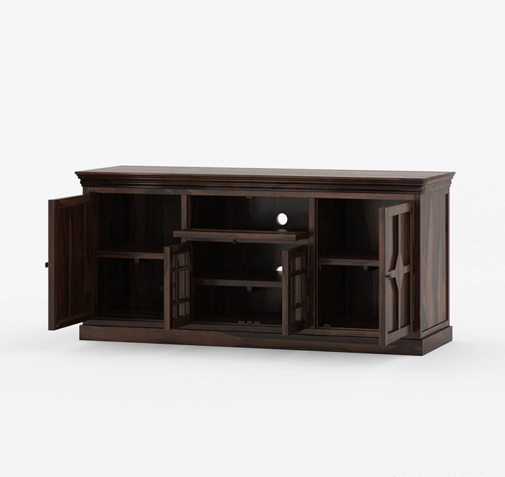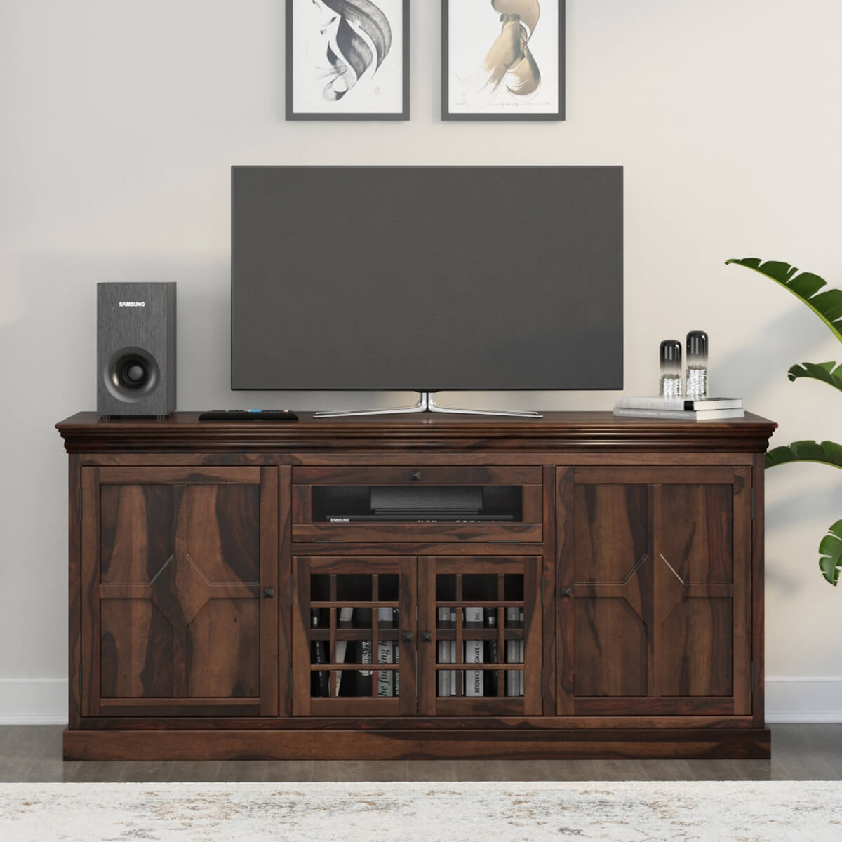Introducing Nismaaya Abay Solid Wood TV Stand Product Speciality Upgrade your entertainment area with the Nismaaya Abay Solid Wood TV Stand, a perfect fusion of style and functionality. Crafted from premium solid wood, this TV stand boasts durability, contemporary design, and ample storage space. Product Description The Abay TV Stand is designed to add a touch of sophistication to your living space. Its solid wood construction ensures longevity, while the modern aesthetic enhances the visual appeal of your entertainment setup. With this TV stand, you can achieve a seamless blend of form and function. Product Features