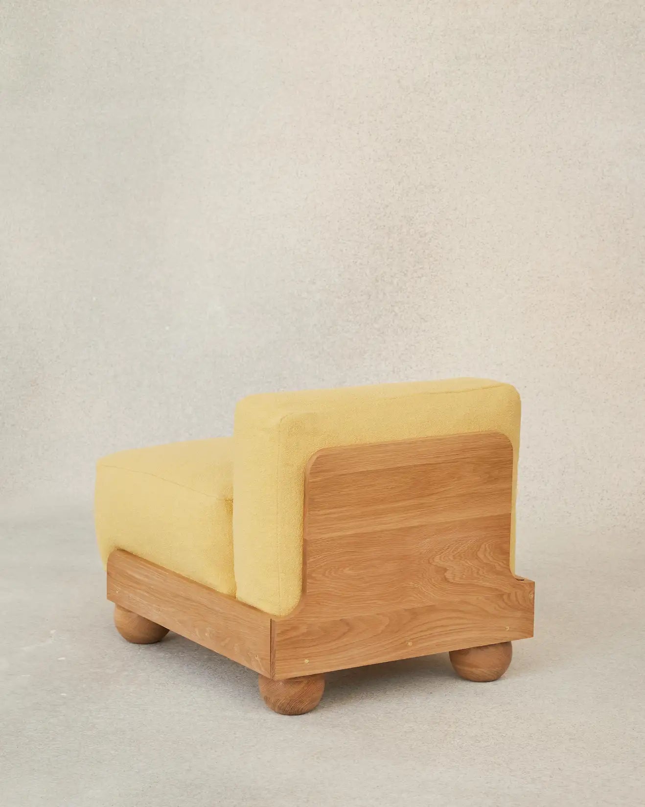 Batson Oak Wood 1 Seater Sofa Yellow 4