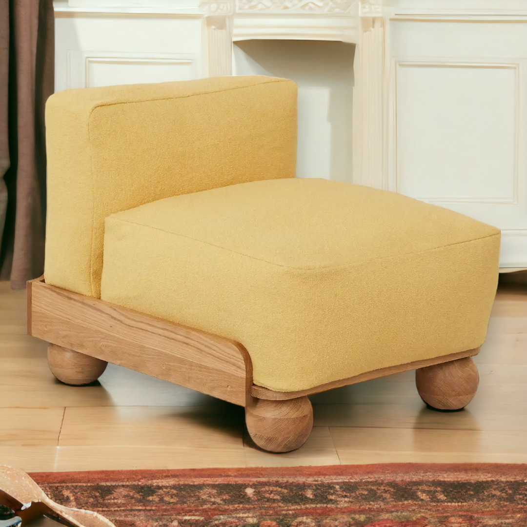 Batson Oak Wood 1 Seater Sofa Yellow 3