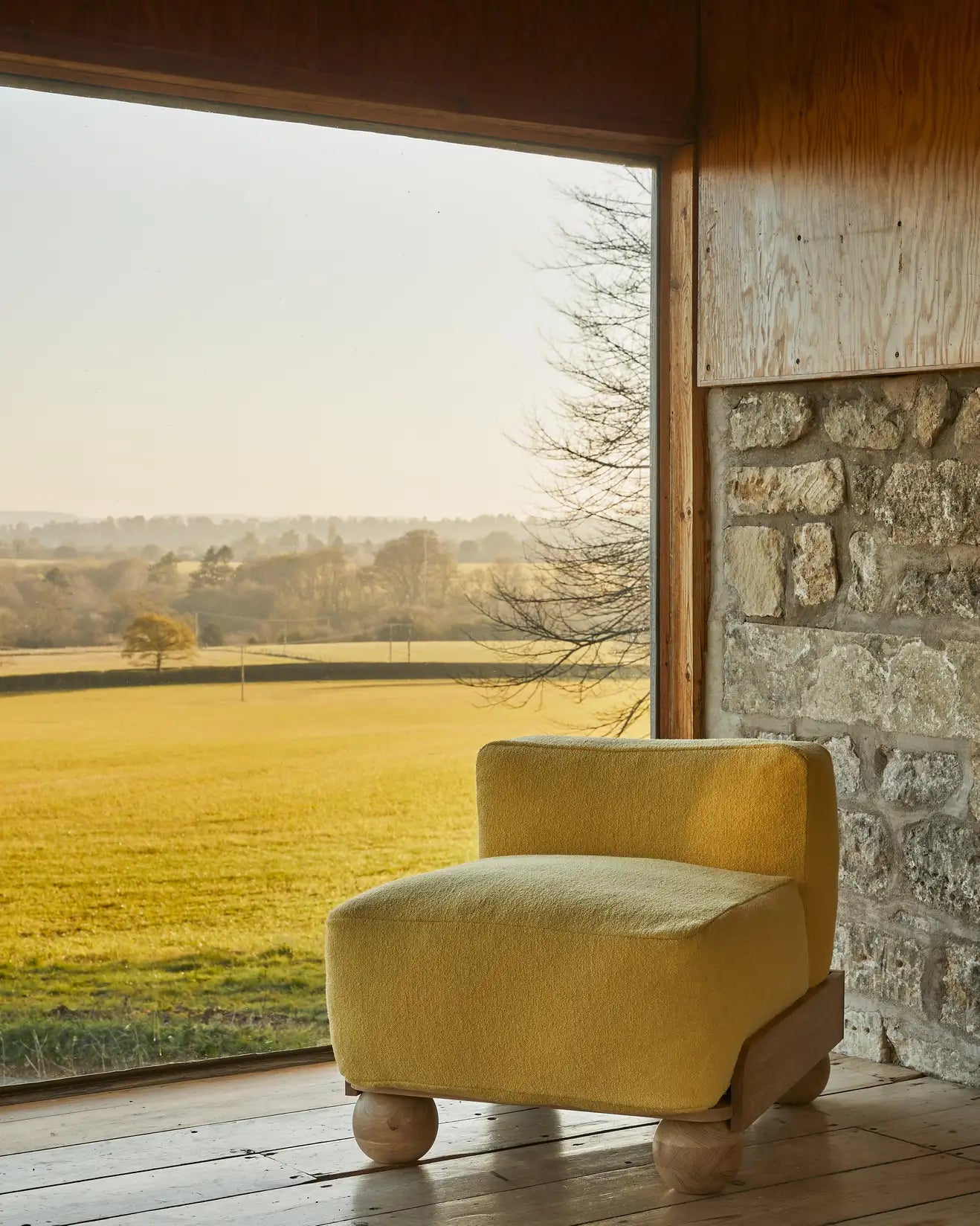 Batson Oak Wood 1 Seater Sofa Yellow 5