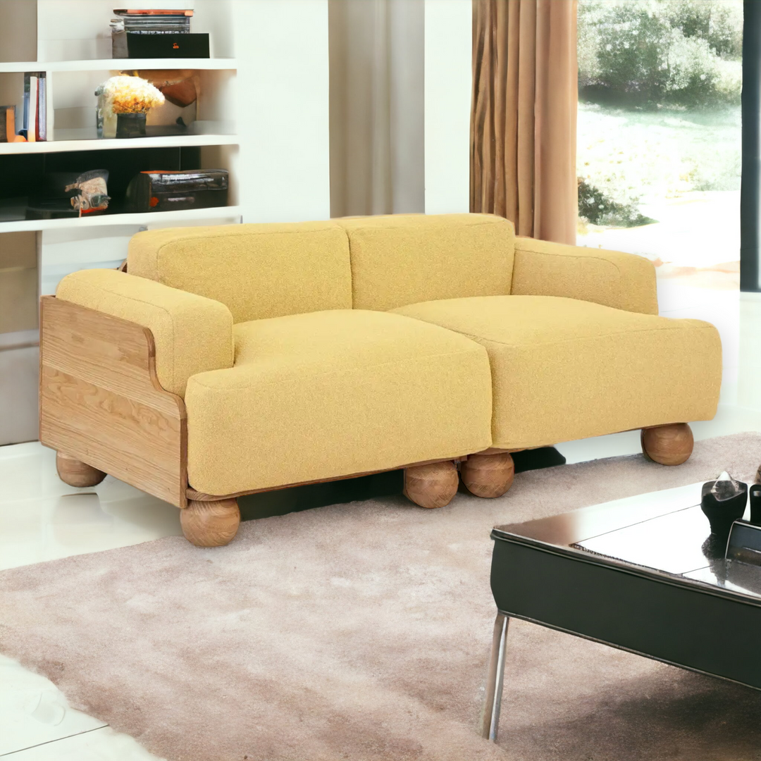 Product Speciality Embrace timeless charm and vibrant comfort with our Nismaaya Batson Oak Wood 2 Seater Sofa in Yellow. Meticulously crafted, this sofa effortlessly combines classic aesthetics with a pop of color. Its oak wood frame and limited edition status ensure an exclusive addition to your living space, promising both style and coziness for your home. Product Description The Nismaaya Batson Oak Wood 2 Seater Sofa features a solid oak wood frame with a warm natural finish, showcasing the beauty of the wood grain. The sofa measures 65 inches in width, 34 inches in depth, and 32 inches in height, offering a cozy seating experience for two. The sofa is upholstered in premium yellow fabric, adding a vibrant touch to your living room. The plush seat and back cushions provide ample support, ensuring a comfortable lounging experience. The elegantly carved wooden legs enhance the sofa's classic aesthetic, making it a focal point in your traditional or eclectic decor. Product Features The Nismaaya Batson Oak Wood 2 Seater Sofa offers a delightful blend of classic design and modern vibrancy. The generously padded seat and back cushions cradle you in softness, creating an inviting space for relaxation and intimate conversations. The high-quality yellow fabric upholstery not only feels exquisite but also adds a pop of color and energy to your decor. The oak wood frame, with its natural finish, exudes warmth and sophistication, making it a versatile choice for various home interior styles. The elegantly carved wooden legs provide stability while enhancing the sofa's overall visual appeal. About Product Quality At Nismaaya, quality is our top priority. The Nismaaya Batson Oak Wood 2 Seater Sofa undergoes rigorous testing and inspection at every production stage. Crafted from superior oak wood and premium upholstery materials, it adheres to the highest quality standards and certifications. Our commitment to transparent supplier management and sustainable practices guarantees that your purchase is not only stylish but also environmentally responsible. Elevate your living space with the Nismaaya Batson Oak Wood 2 Seater Sofa in Yellow, a limited edition masterpiece that combines timeless charm with vibrant comfort. Transform your home into a haven of style and warmth, reflecting your discerning taste and appreciation for superior craftsmanship. |