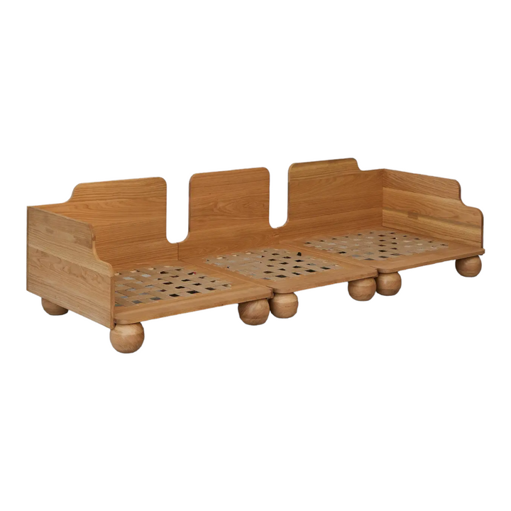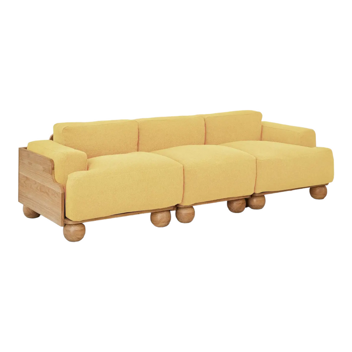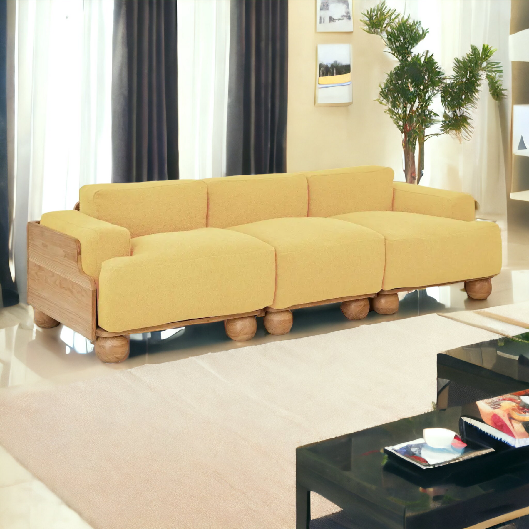Nismaaya Batson Oak Wood 3 Seater Sofa Yellow