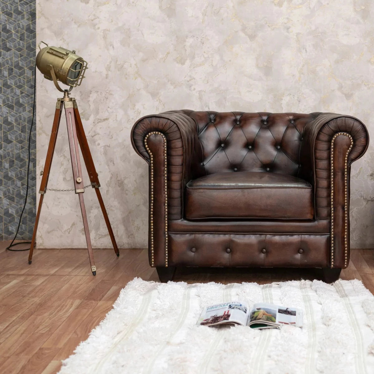 Description Introducing the Nismaaya Campos Traditional Chesterfield Leather 1 Seater Sofa: Timeless Elegance and Exceptional Comfort for Your Living Space!