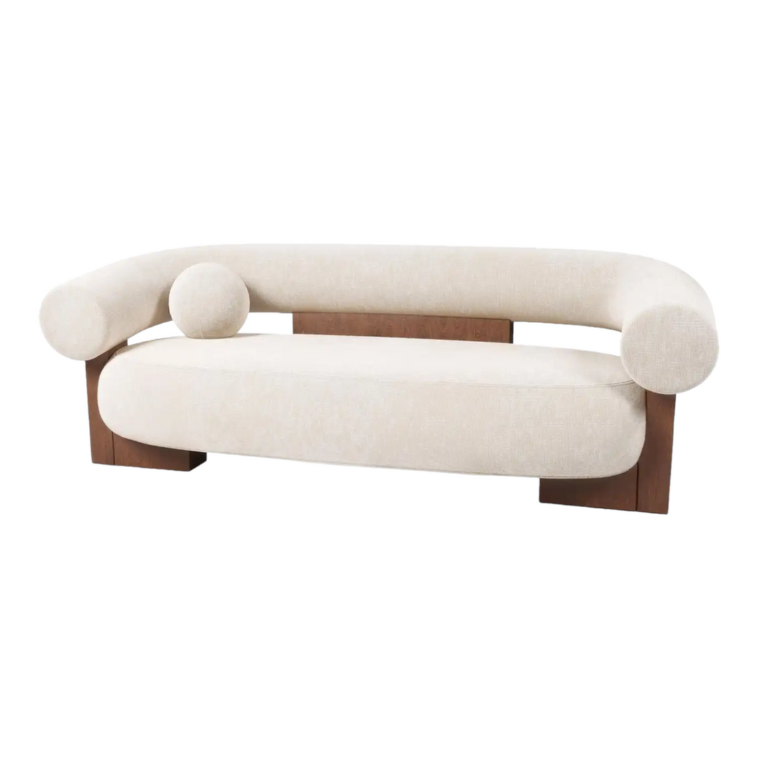 Fabrice 3 Seater Walnut Wood & Boucle Sofa