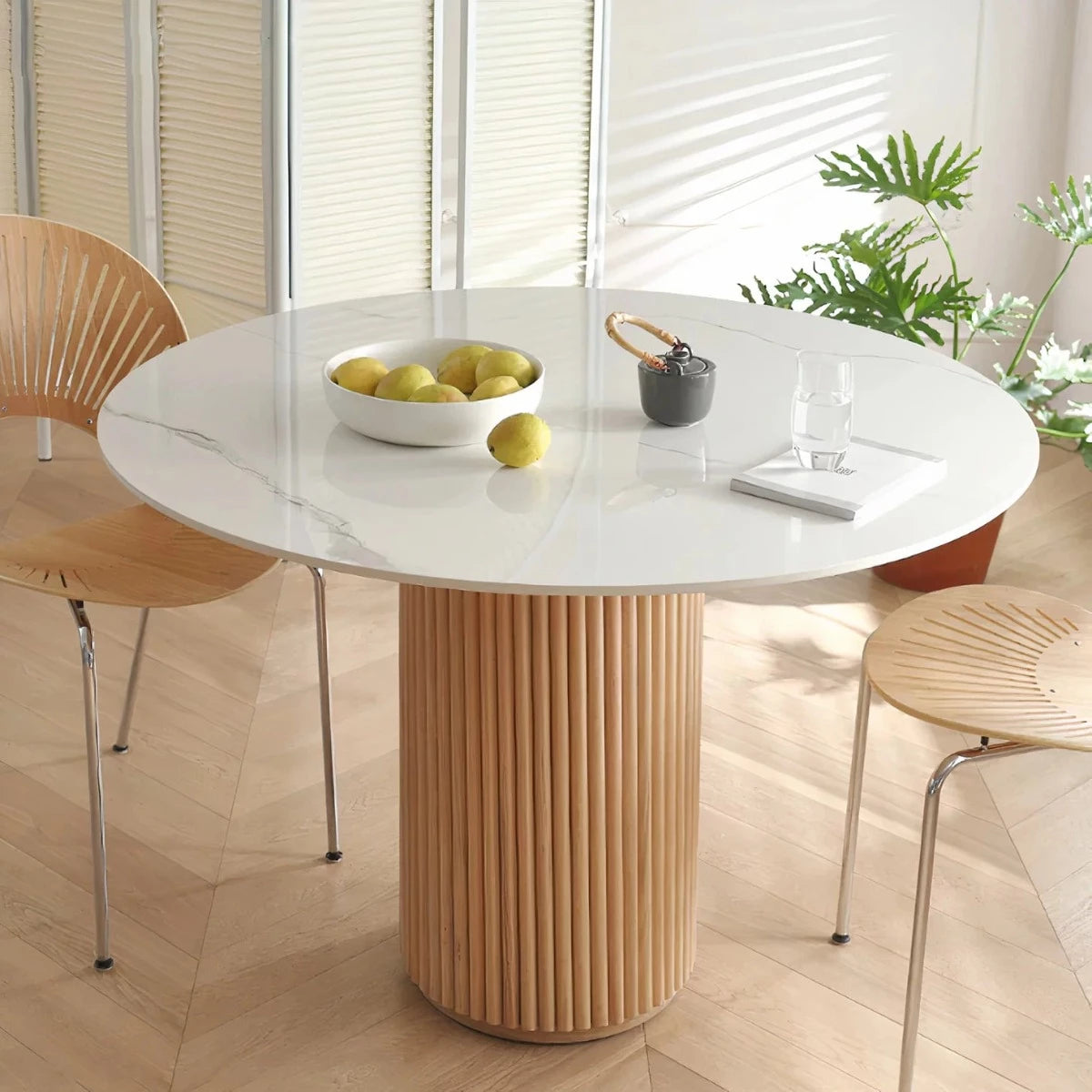 Nismaaya Gabe Marble Top White Oak Round Dining Table