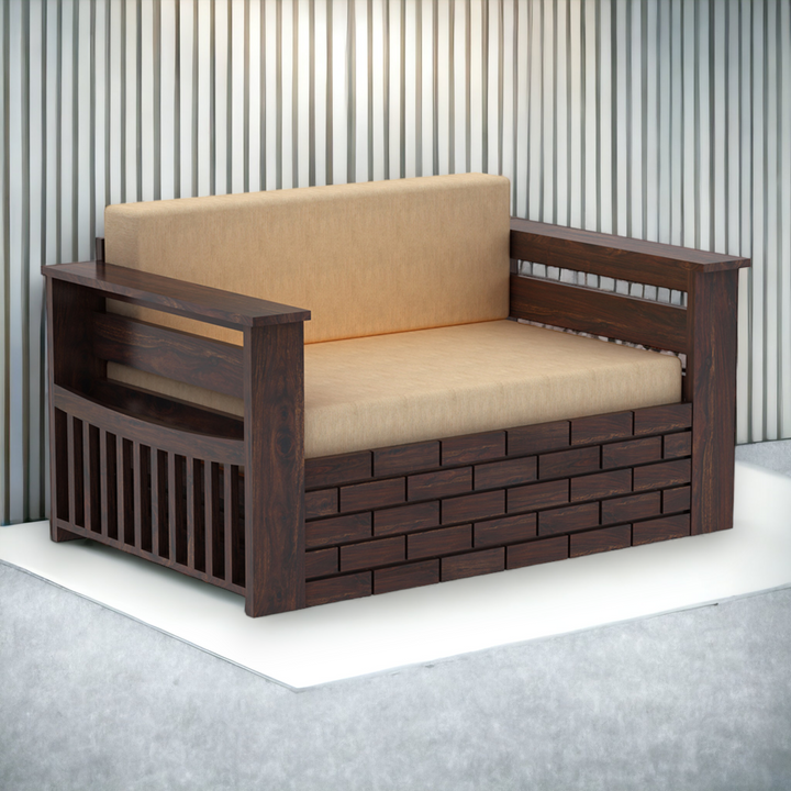 Introducing the LuxiBlend 2 Seater Walnut Sofa Cum Bed: Where Sheesham Wood Elegance Meets Cozy Comfort! Product Description |