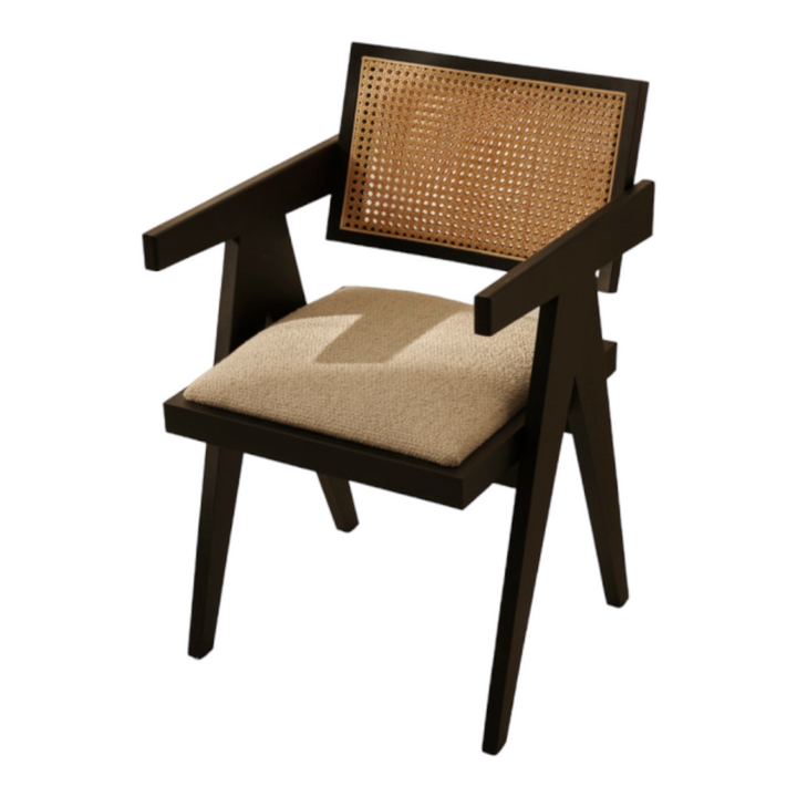 INTRODUCING THE NISMAAYA HILARIUS RATTAN DINING CHAIR WITH UPHOLSTERED SEAT IN BLACK