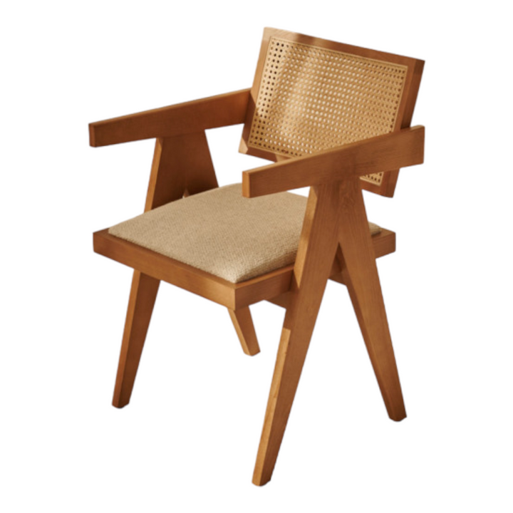 Nismaaya Hilarius Rattan Dining Chair Upholstered Seat Natural