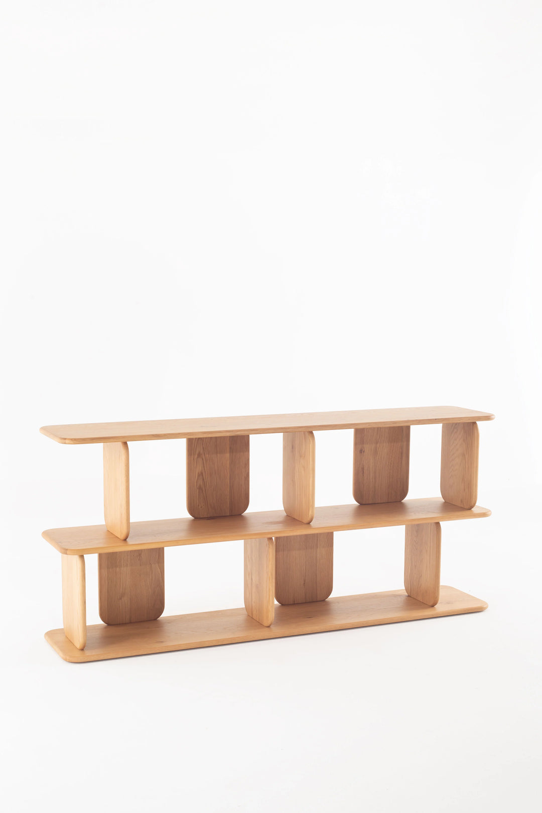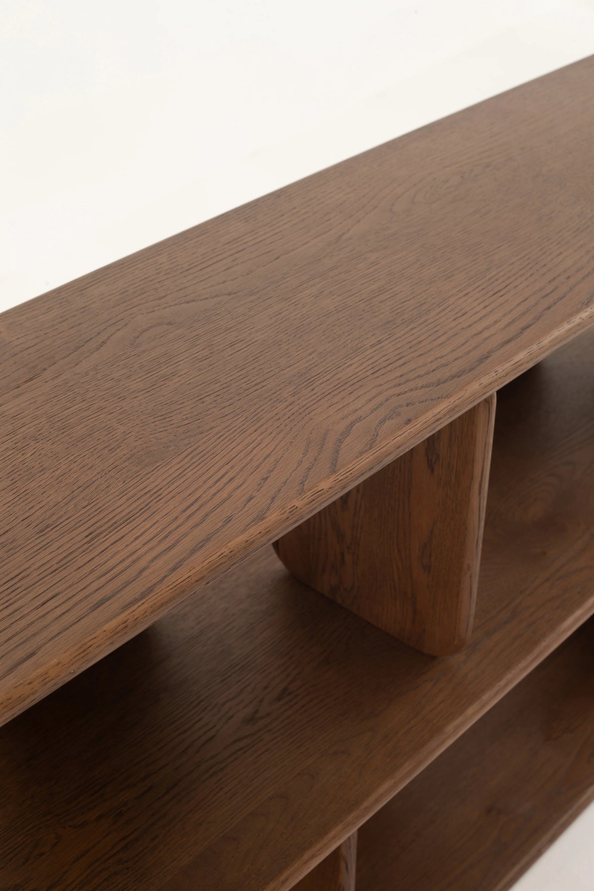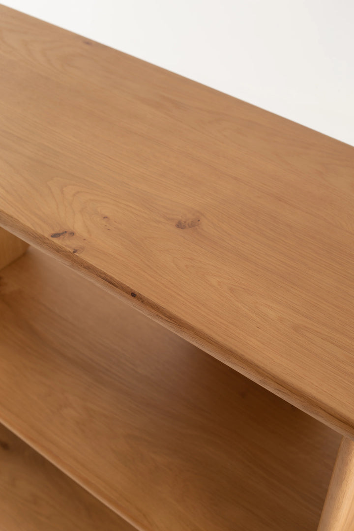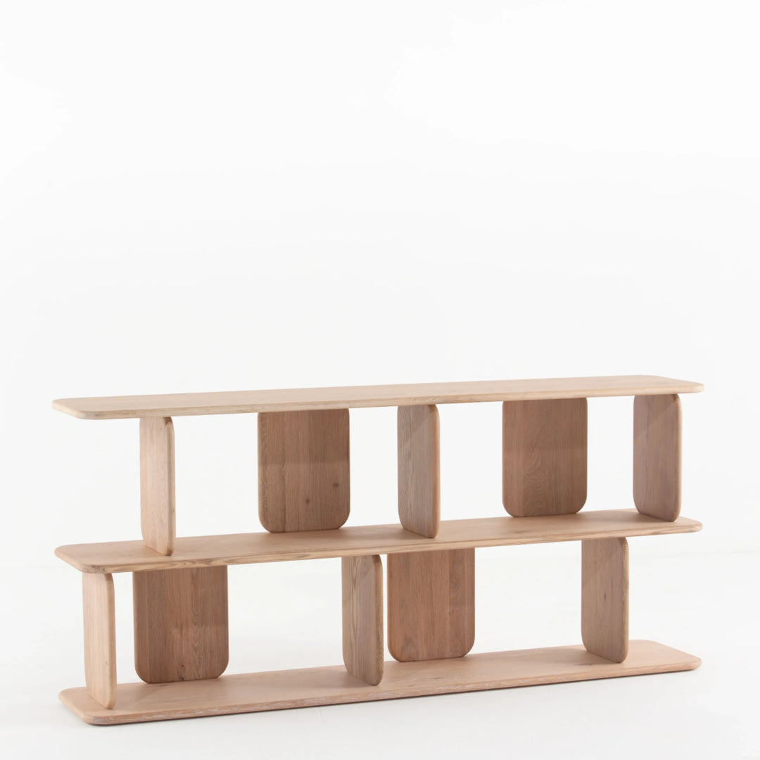 | Description | Crafted from Oak, this display shelf combines sculptural elegance with practical functionality. The sleek, rectangular panels and rounded edges create a fluid, contemporary design, while the rich wood grain texture enhances its organic appeal. With its open three-tier structure, this versatile piece offers ample storage and display space for books, décor, and essentials. Available in white oak, teak wood, mango wood, sheesham wood honey finished, and sheesham wood walnut finished, it seamlessly integrates into modern, minimalist, or Scandinavian interiors, making it a statement piece for living rooms, hallways, or offices. |