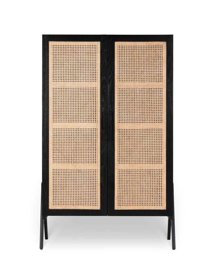 Introducing MABLI: Teak Sophistication with Black Stain & Rattan Accents Elevate your living space with the NISMAAYA MABLI TEAK WOOD WITH BLACK STAIN & RATTAN CUPBOARD—a fusion of timeless teak wood, contemporary design, and artisanal craftsmanship. Product Speciality MABLI stands out as a symbol of sophistication and functionality. Crafted from premium teak wood and adorned with intricate rattan details, it seamlessly combines durability with artistic flair. Product Description MABLI is not just a storage solution; it's a design statement. The teak wood, treated with a bold black stain, creates a striking contrast that accentuates the natural beauty of the wood. Rattan accents add an element of artisanal charm. Product Features