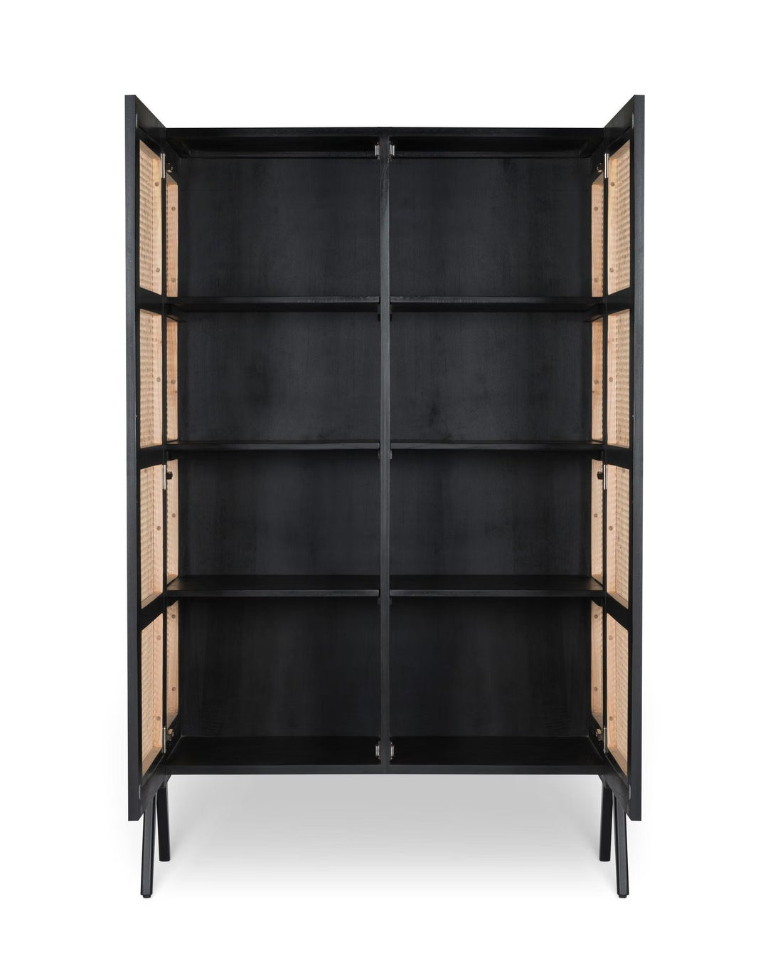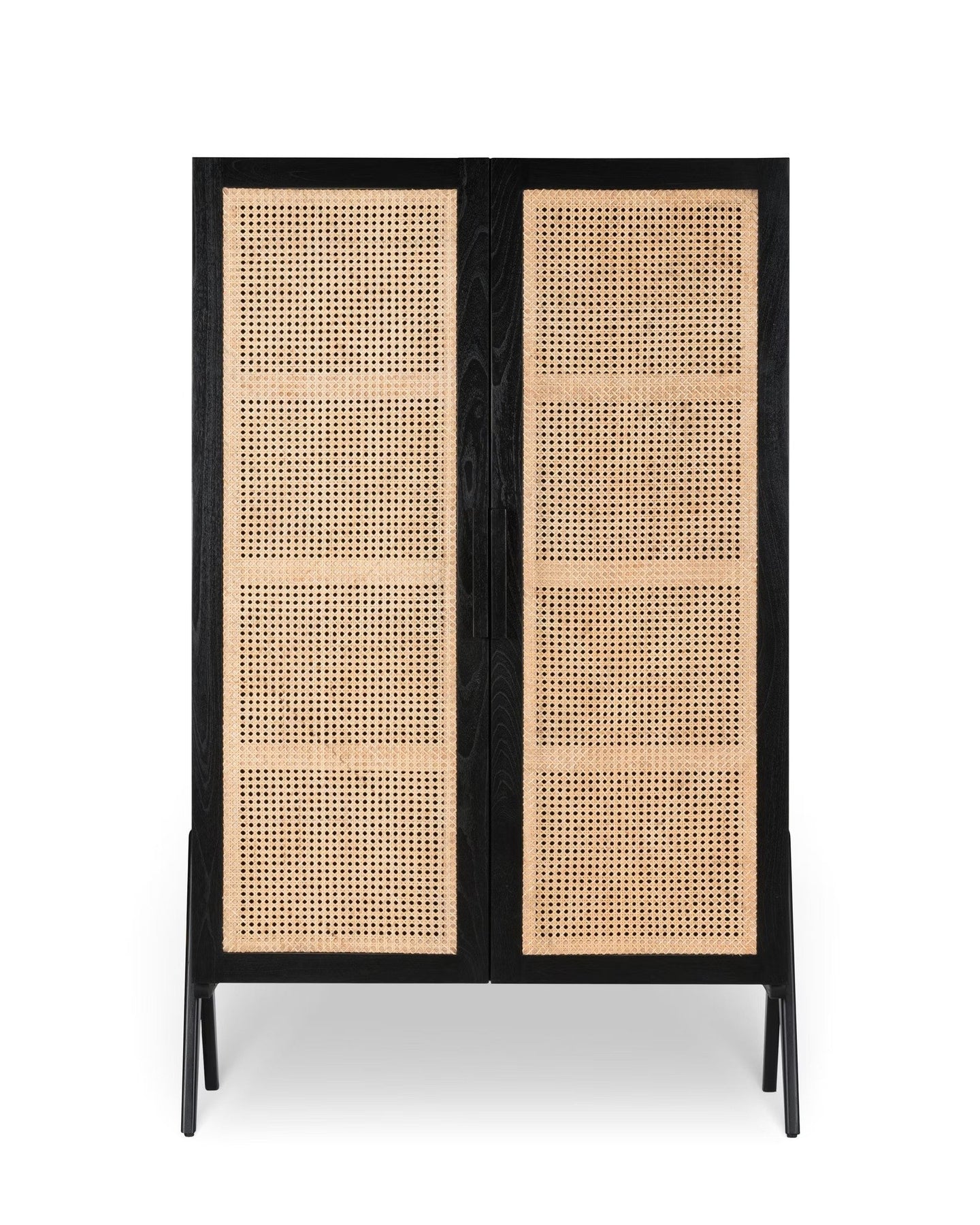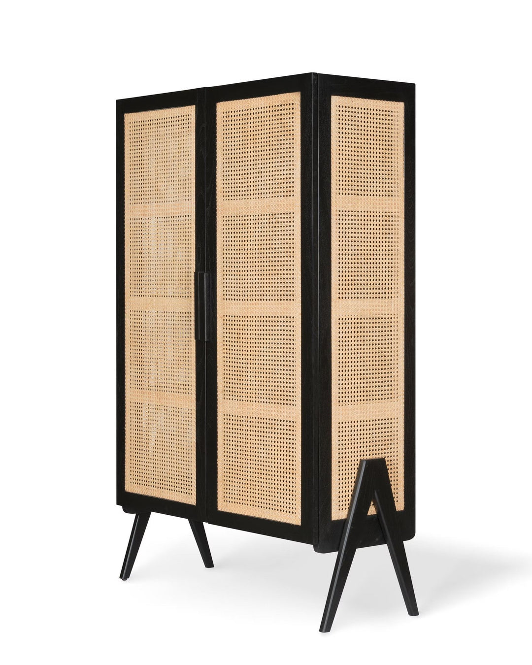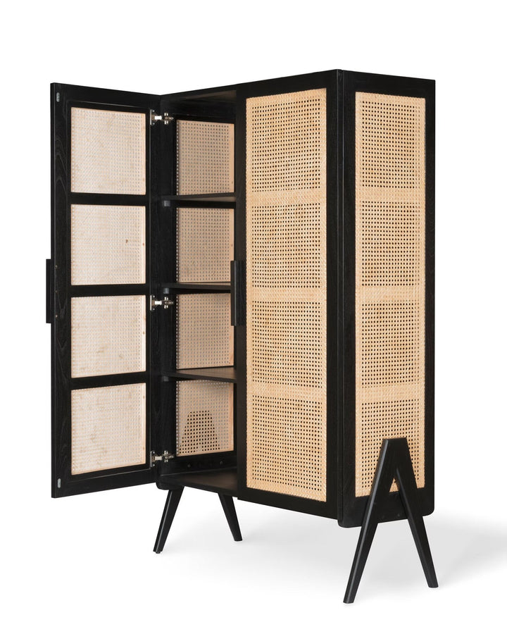 Nismaaya Mabli Teak Wood With Black Stain & Rattan Cupboard