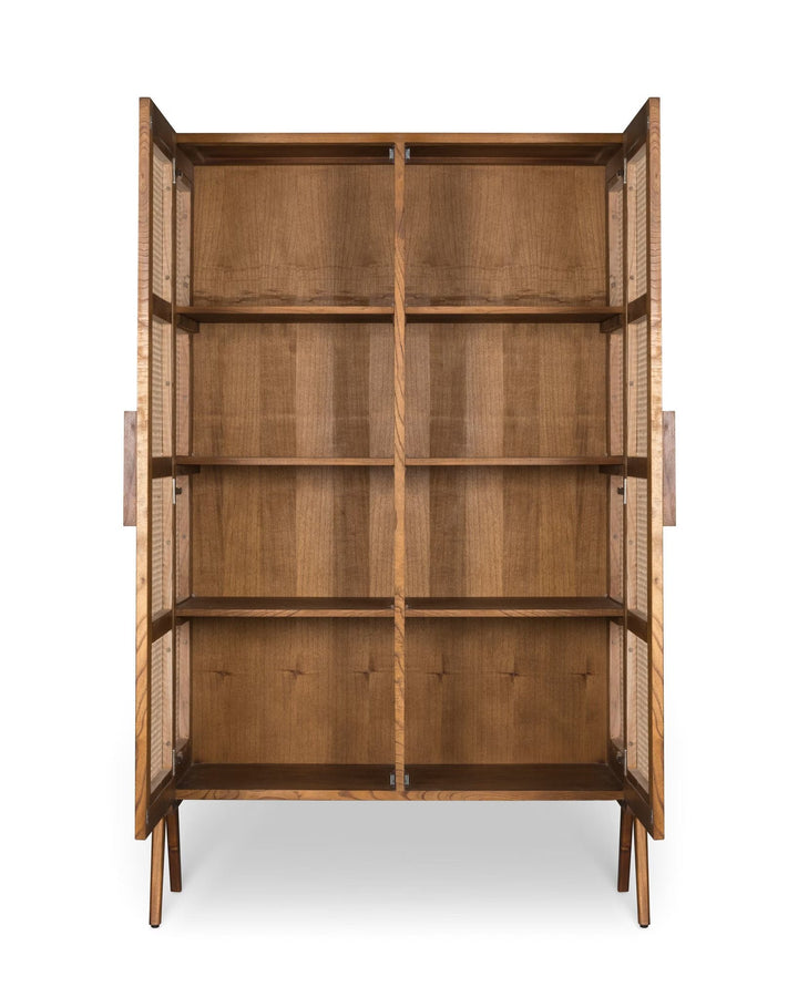 Introducing the NISMAAYA MABLI TEAK WOOD WITH STAIN & RATTAN CUPBOARD, where the richness of teak meets the artful integration of rattan.