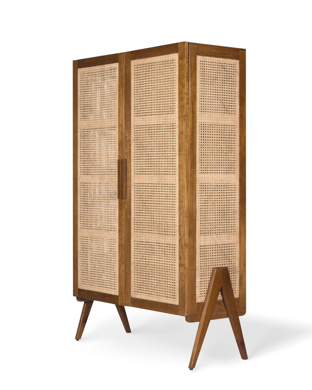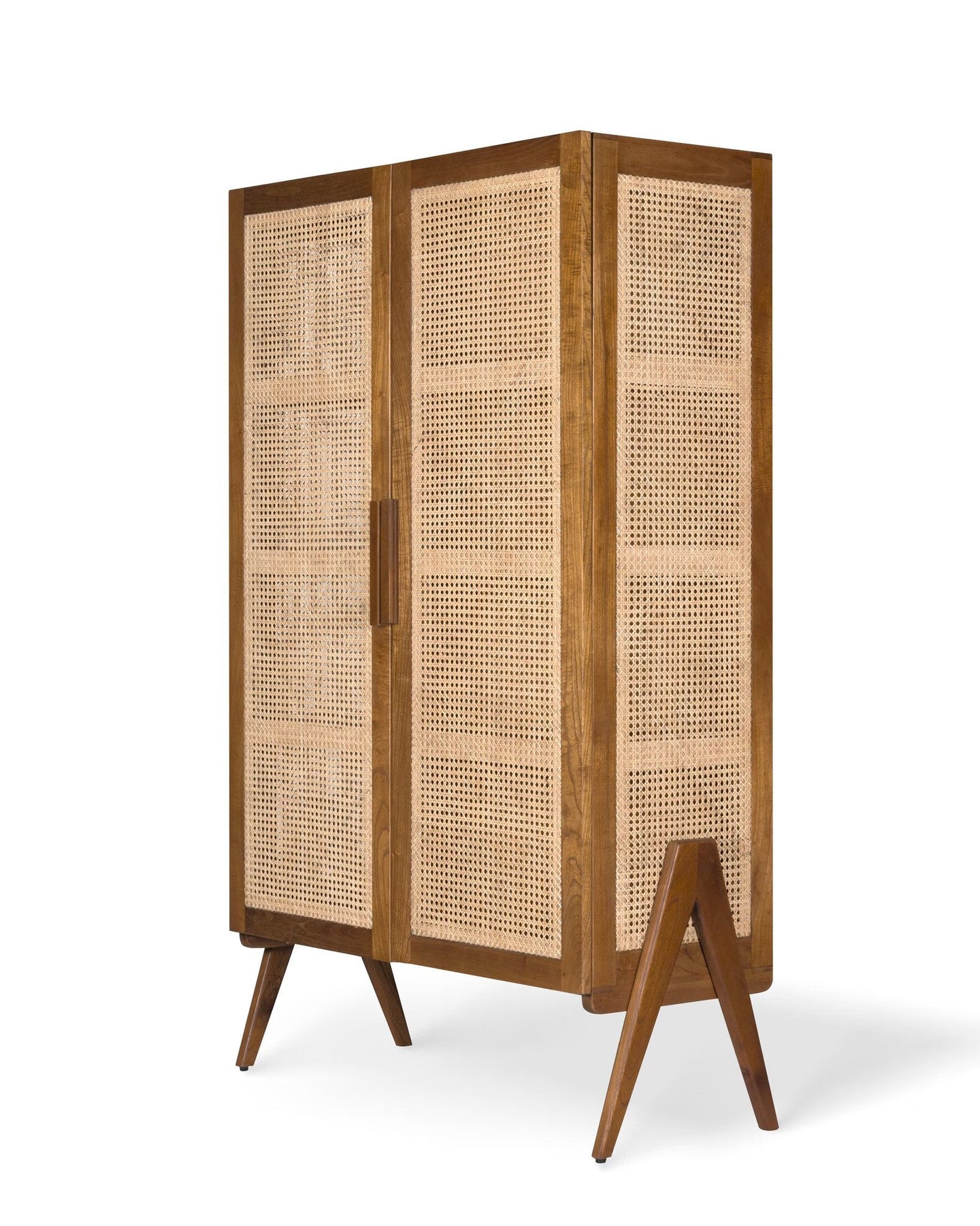 Nismaaya Mabli Teak Wood With Stain & Rattan Cupboard