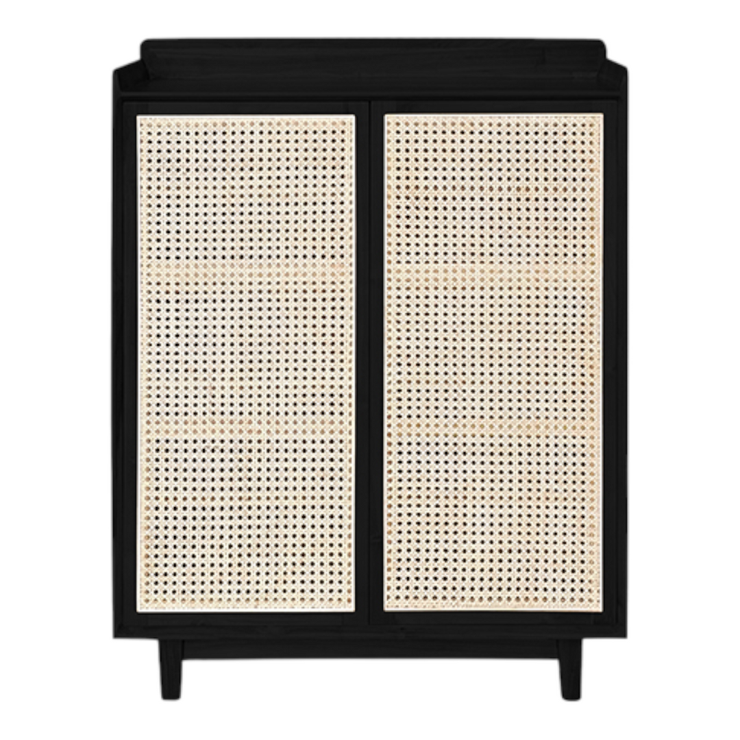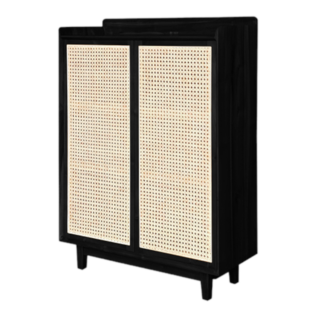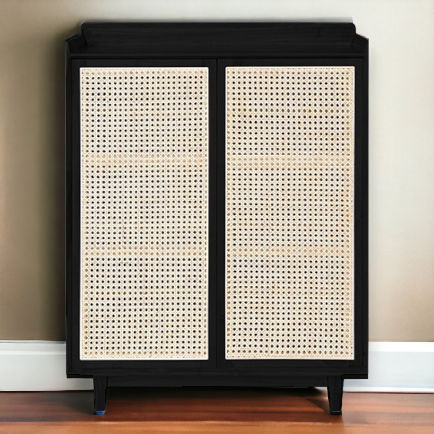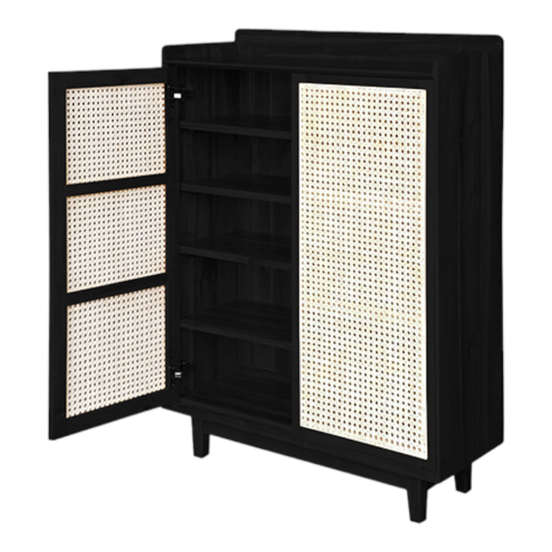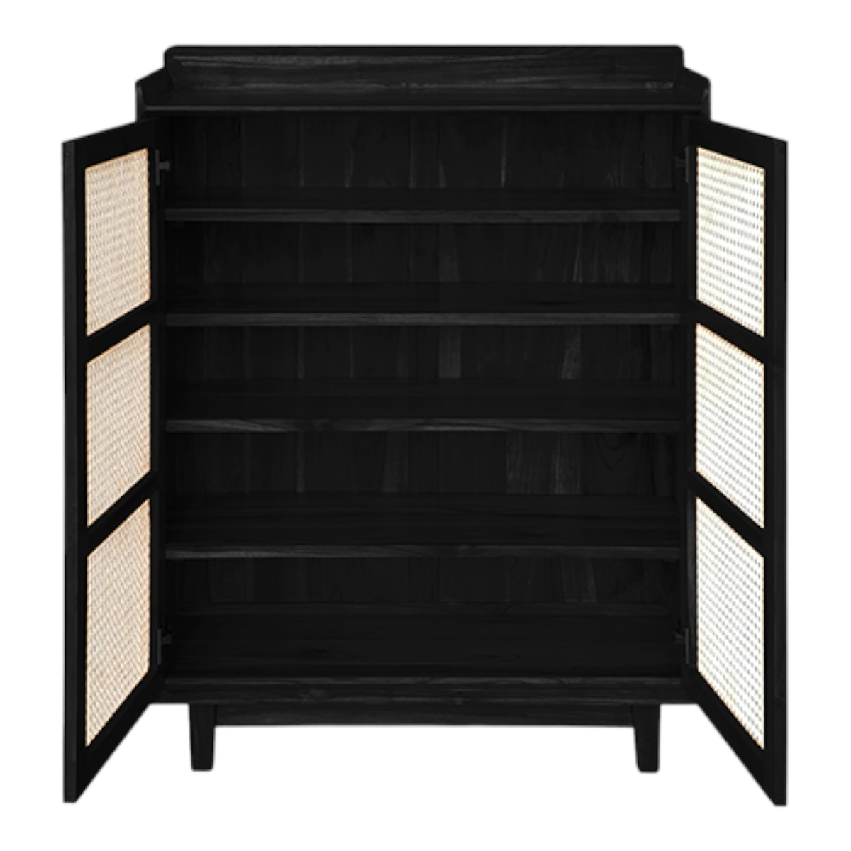 Mai Cane Shoe Rack Black Teak Wood & Cane