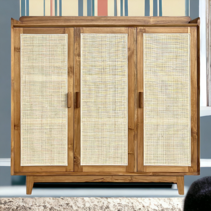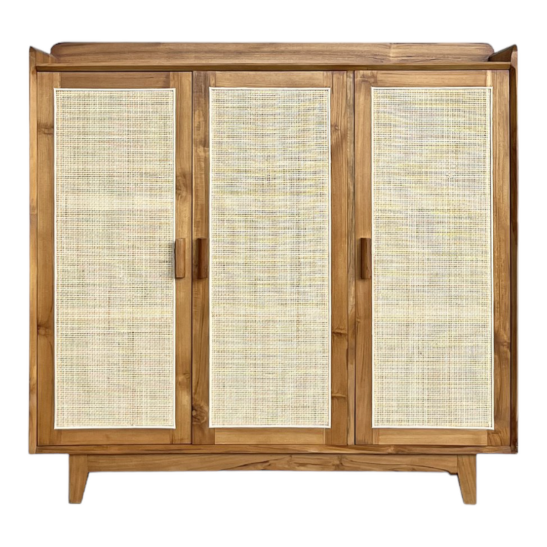 Maia Cane Shoe Rack Teak Wood & Cane