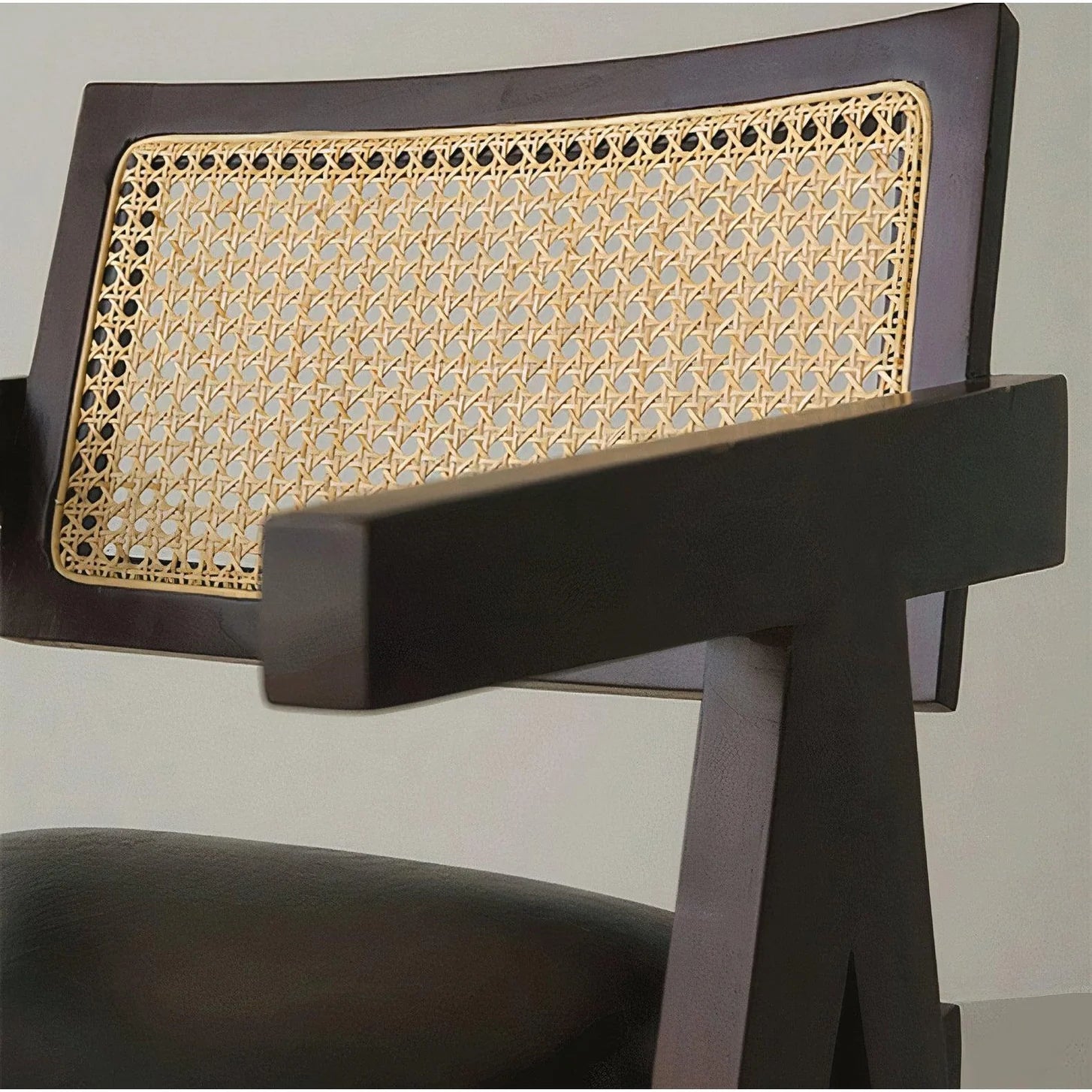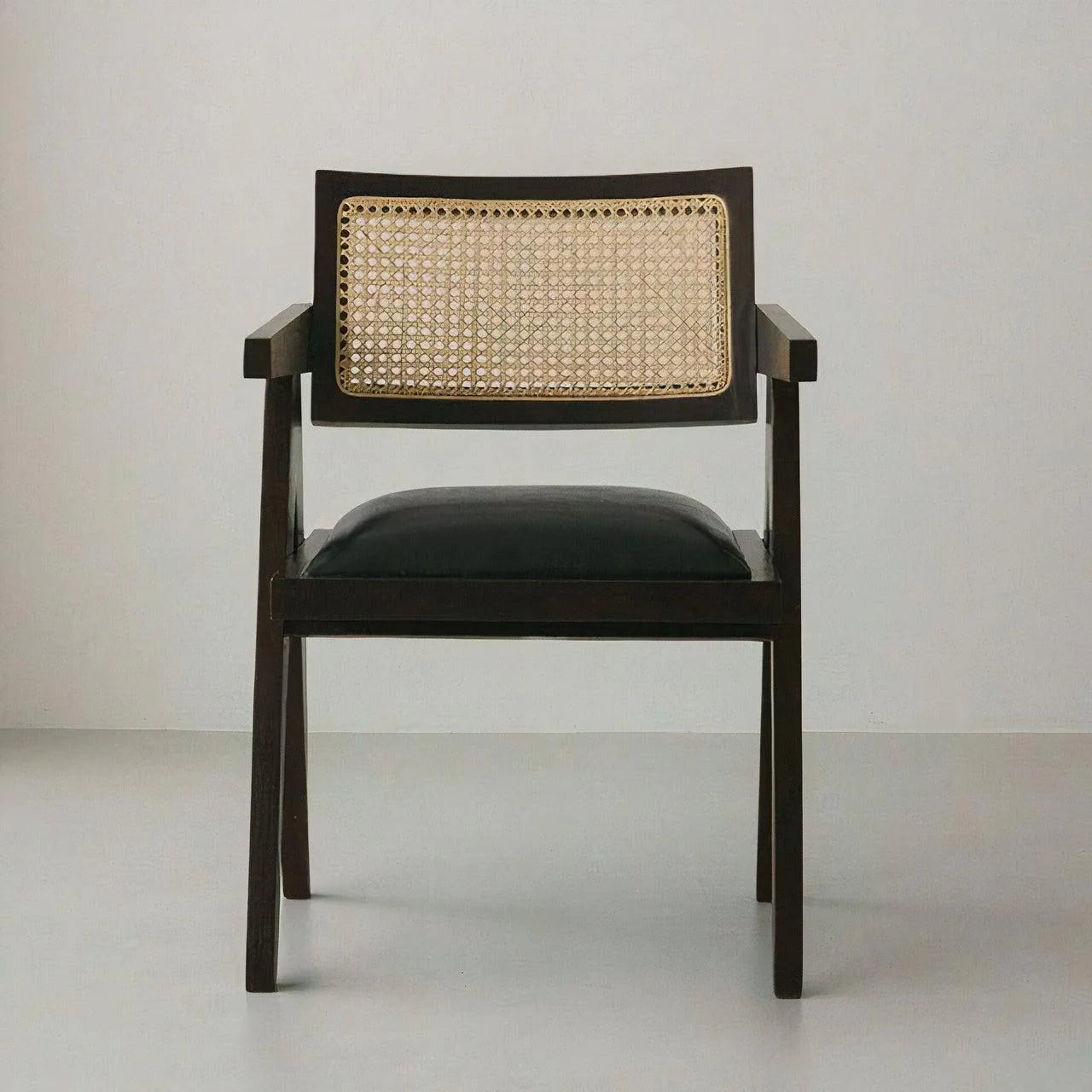Nismaaya Naava Dark Walnut Finish & Rattan Dining Chair Black