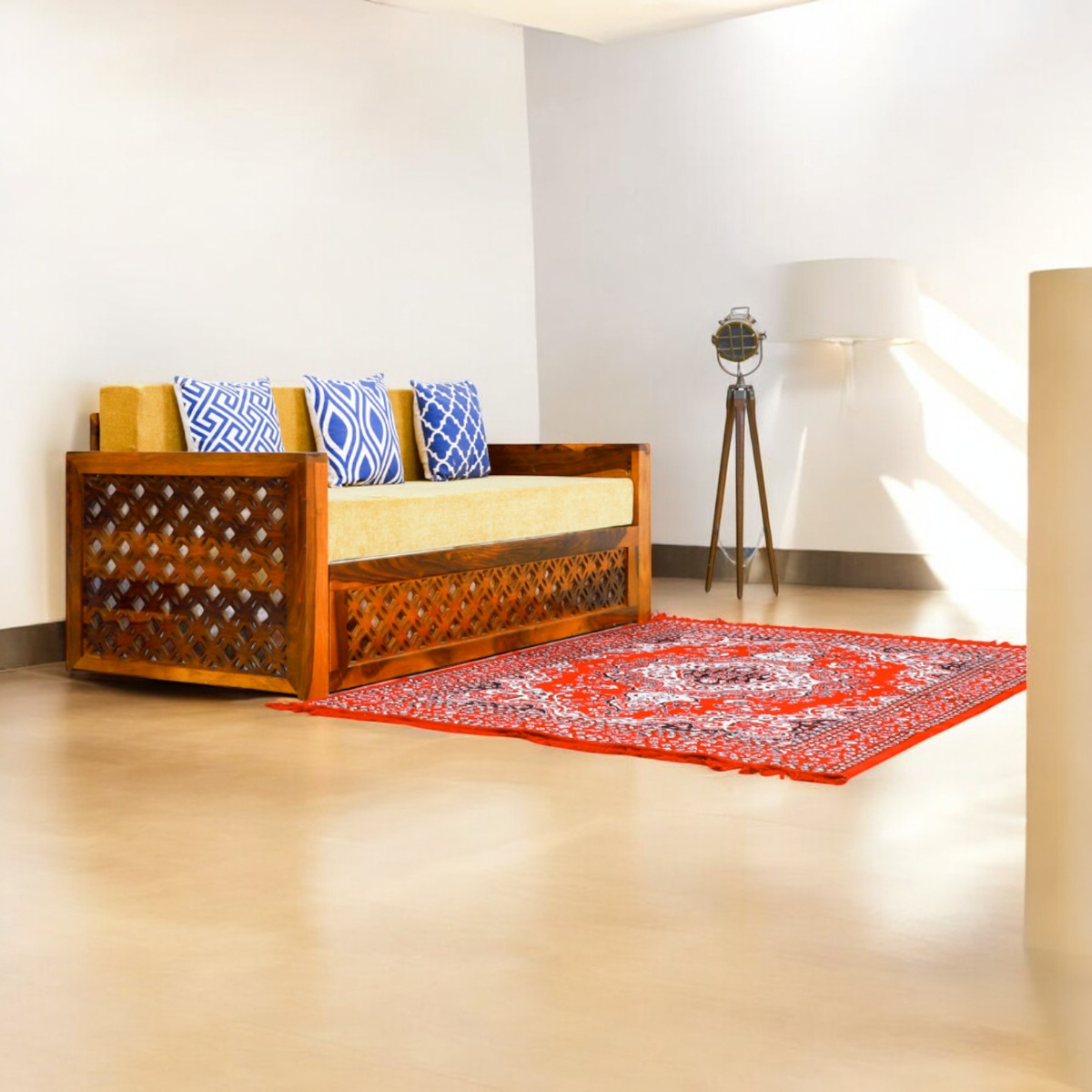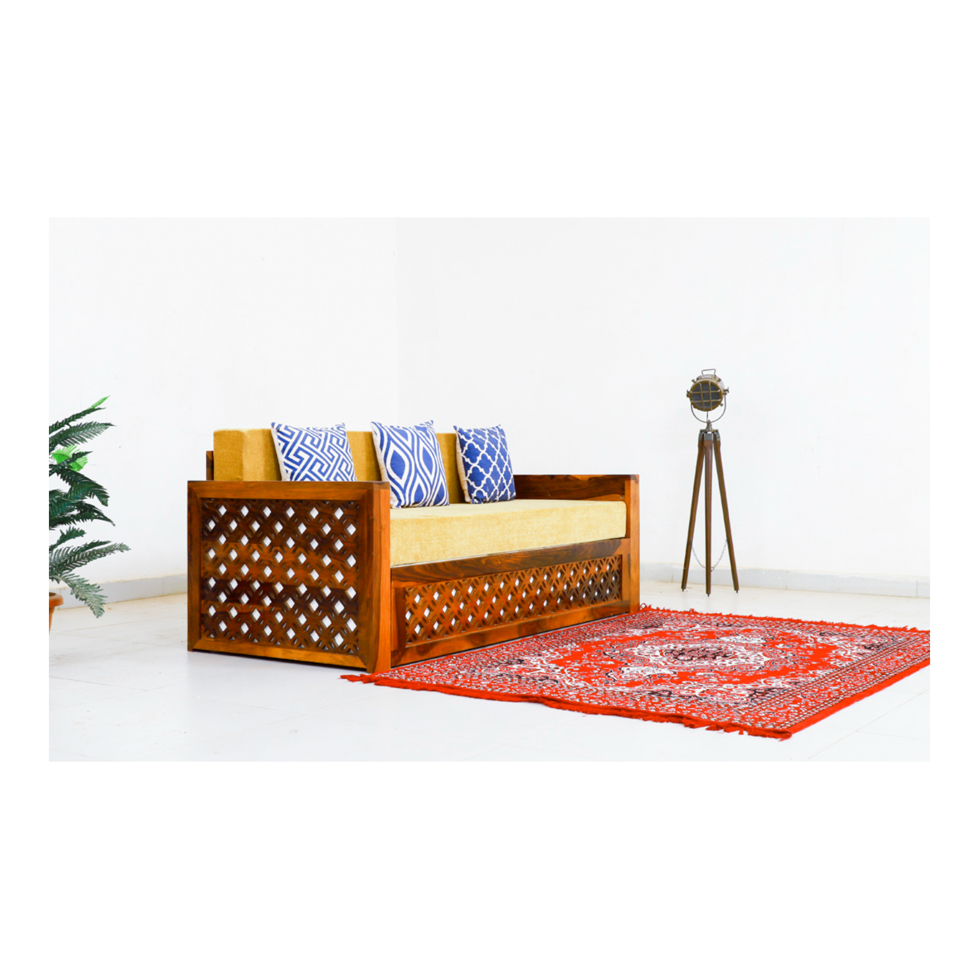 At Nismaaya Decor, we keep updating our designs, and there may be some changes and variations in materials and elements used in comparison to what you see online. However, these changes will be minor, not affecting your preferences and design choices. As wood and stone are natural products, they react in a different way to staining, and thus they may impact their appearance in terms of colour, grains, and patterns. The handmade fabrics look slightly different in the photographs due to angles and lighting. Also, we confirm the availability of fabrics used in the furniture pieces post receipt of the payment.