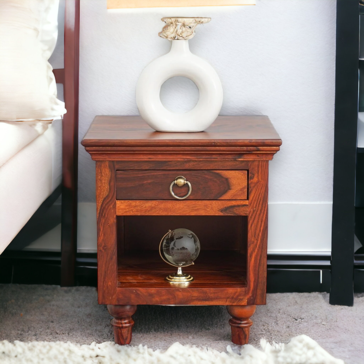 Enhance your bedroom decor with the Nismaaya Parkin Bedside Table, a limited edition masterpiece that seamlessly blends elegance, functionality, and outstanding craftsmanship. Transform your bedroom into a haven of sophistication, reflecting your discerning taste and appreciation for timeless design.