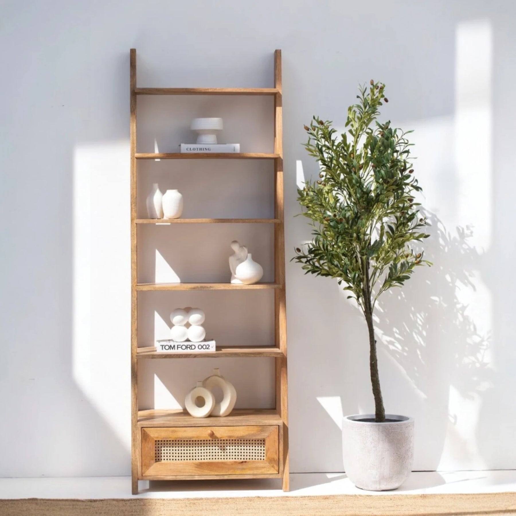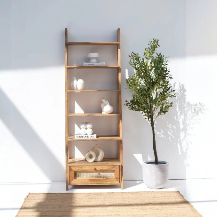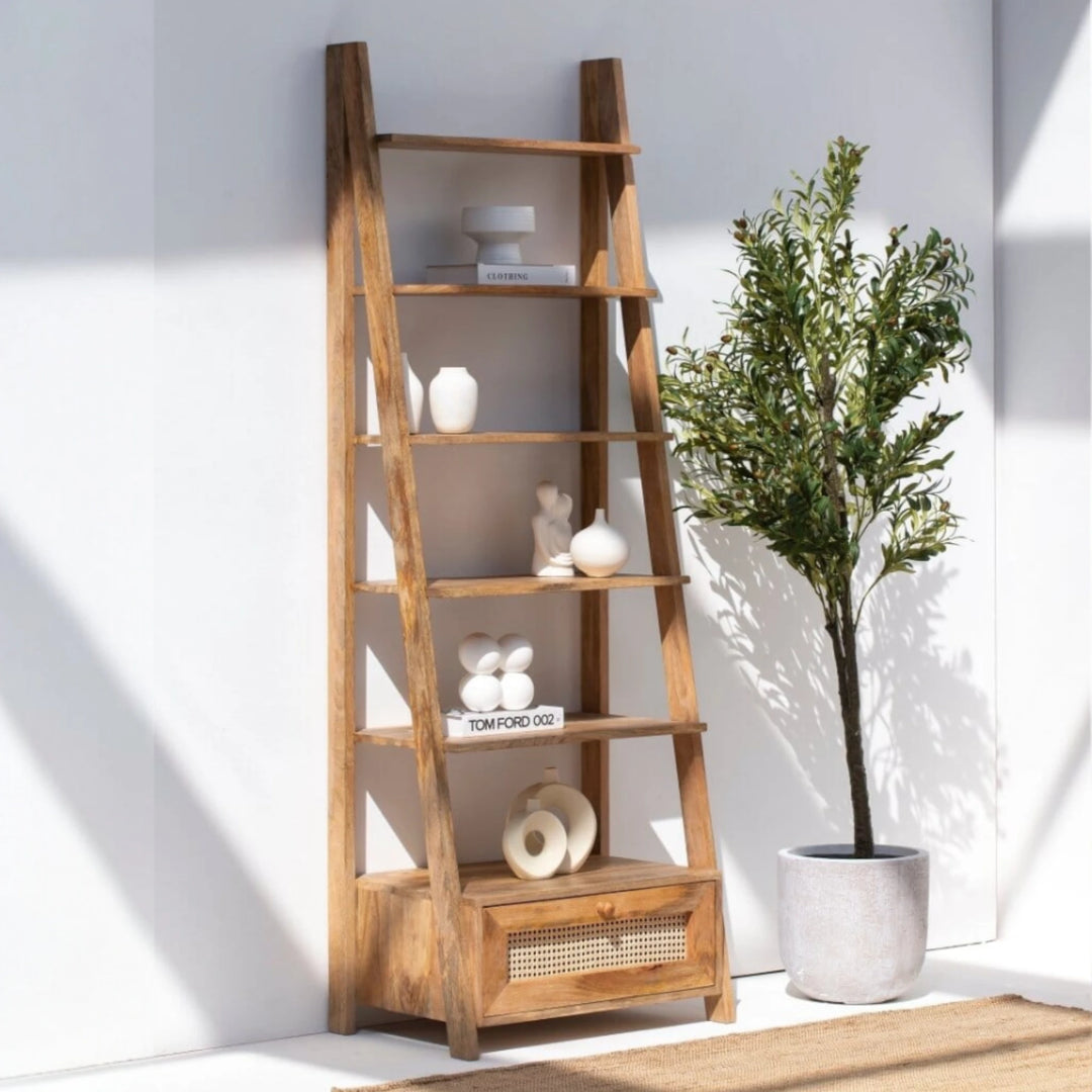 | Description | Our Wooden Ladder Bookcase with Rattan Drawer combines rustic charm with modern functionality, making it a versatile addition to any room. Crafted from high-quality wood, this bookcase features a unique ladder design that leans against the wall, saving space while adding a stylish element to your décor. The rattan drawer adds a touch of natural texture, perfect for storing small items or accessories. |