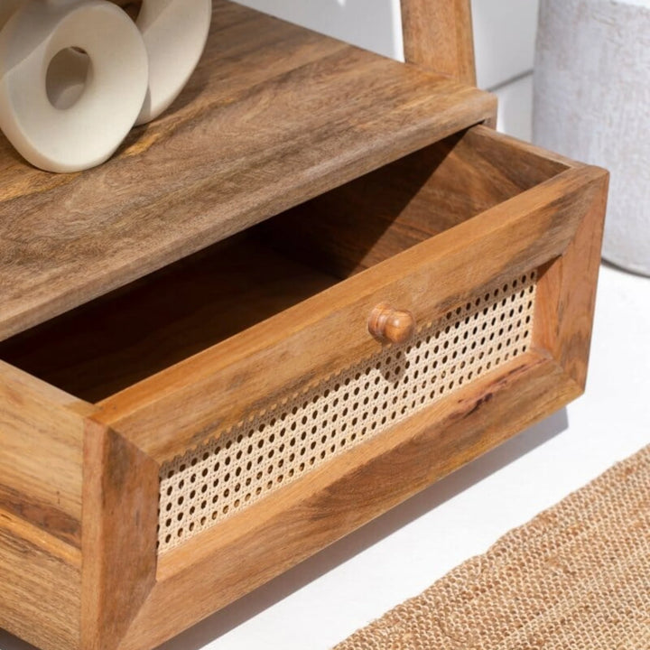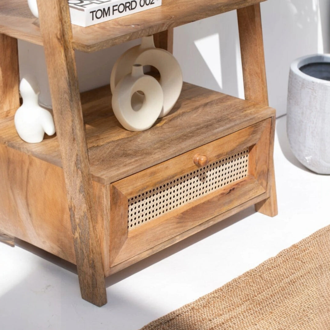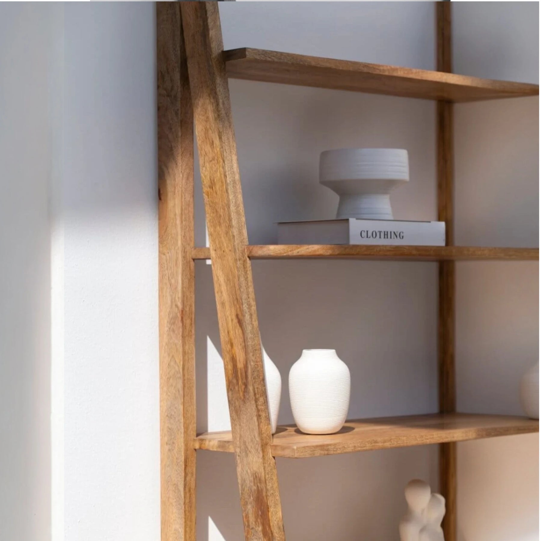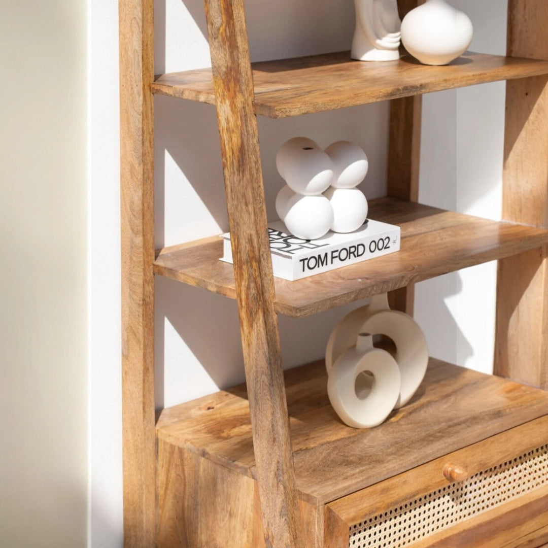 | Description | Our Wooden Ladder Bookcase with Rattan Drawer combines rustic charm with modern functionality, making it a versatile addition to any room. Crafted from high-quality wood, this bookcase features a unique ladder design that leans against the wall, saving space while adding a stylish element to your décor. The rattan drawer adds a touch of natural texture, perfect for storing small items or accessories. |