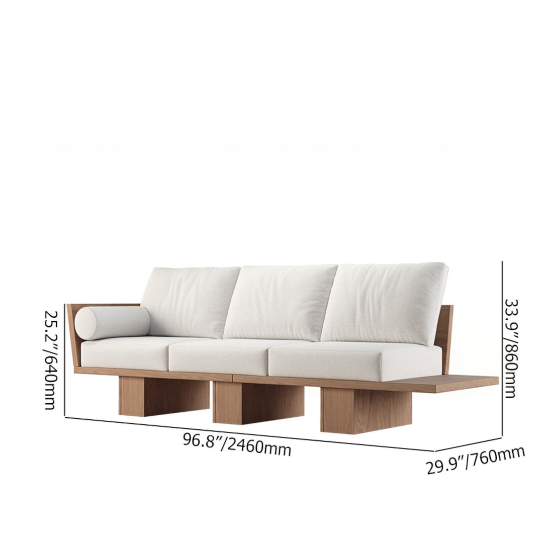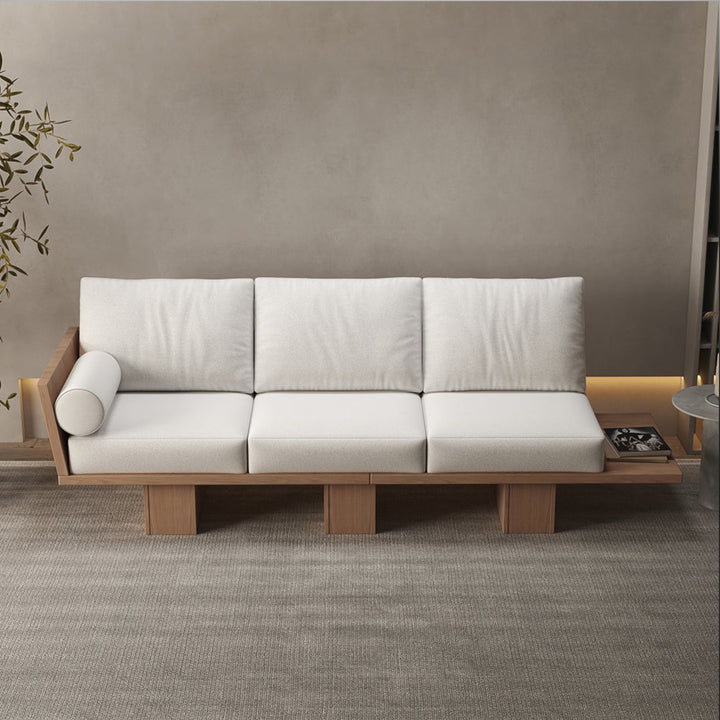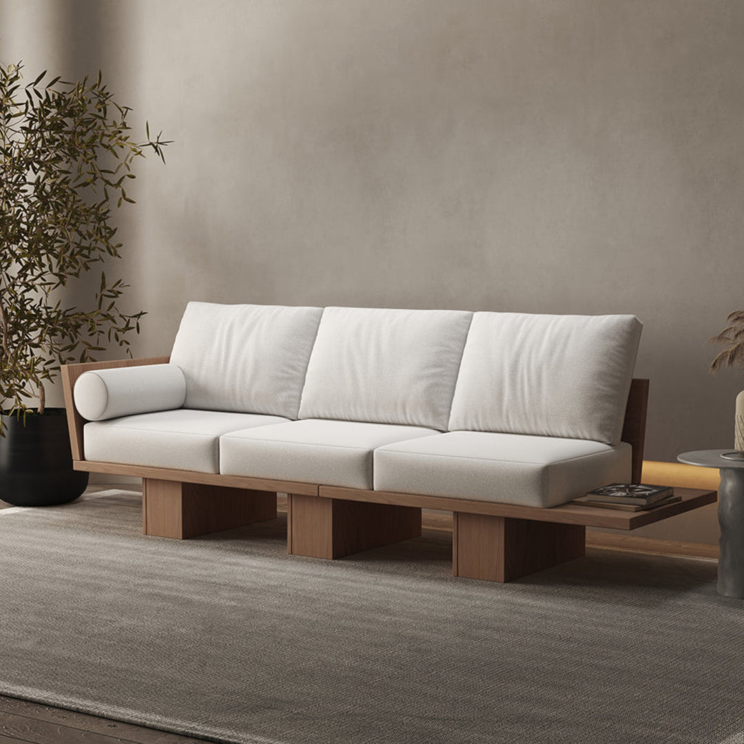 The Parma Solid Wood Sofa is a beautifully crafted piece of furniture that exudes style and sophistication. With a clean-lined, Japandi-inspired design, this 3-seater sofa is handsome from every angle and adds a touch of elegance to any living room. Crafted with a frame of solid wood, this sofa is sturdy, durable, and perfectly balanced. The cylindrical pillow against a single arm and the open shelf add to the sofa's concise and practical design, making it both stylish and functional. The high-density sponge cushions covered in detachable cotton-linen fabric provide sink-in-and-stay-a-while comfort, making it the perfect spot to relax and unwind after a long day. Whether you're reading a book, watching TV, or spending time with loved ones, the Parma Solid Wood Sofa offers a comfortable and inviting seating option. Please note, our handcrafted wooden products are designed to breathe with the seasons, so don't be surprised if you notice some delightful changes in their appearance due to natural shifts in humidity. It's all part of the wood's unique character. |